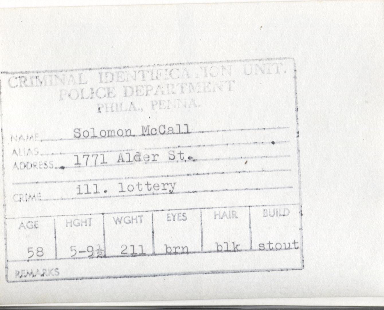 Solomon McCall Mugshot - Arrested on 10/30/1960 for Illegal Lottery