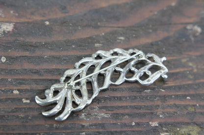 Here is a very lovely vintage sterling silver brooch in a feather-like form. It is marked STERLING and features a hallmark that looks like "IC." The total weight is 0.4 ounces. The brooch is 2.25" long.