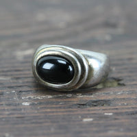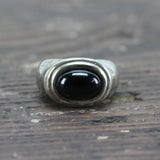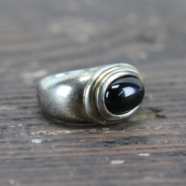 Sterling Silver Ring with Large Onyx Stone - Size 10.75