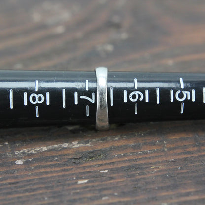 Here is a lovely size 6.5 sterling silver ring with 7 clear translucent stones arranged in a straight line and varying in sizes. The ring is marked 925 for sterling silver as well as Thailand. The ring is in good condition.