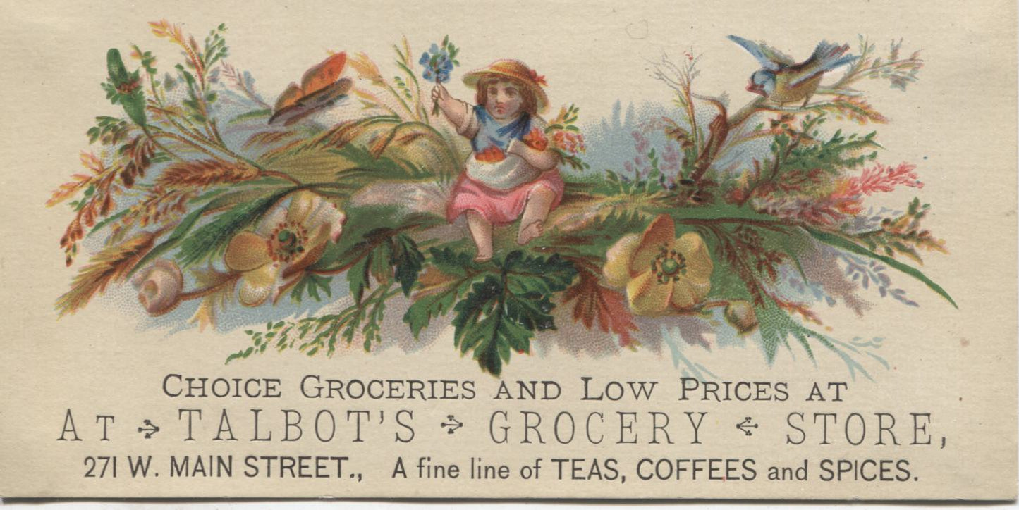 Talbot's Grocery Store Antique Trade Card - 5" x 2.5"