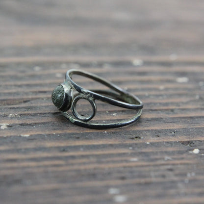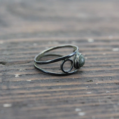 Taxco Mexican Sterling Silver Ring With Greenish-Black Stone - Size 7.5