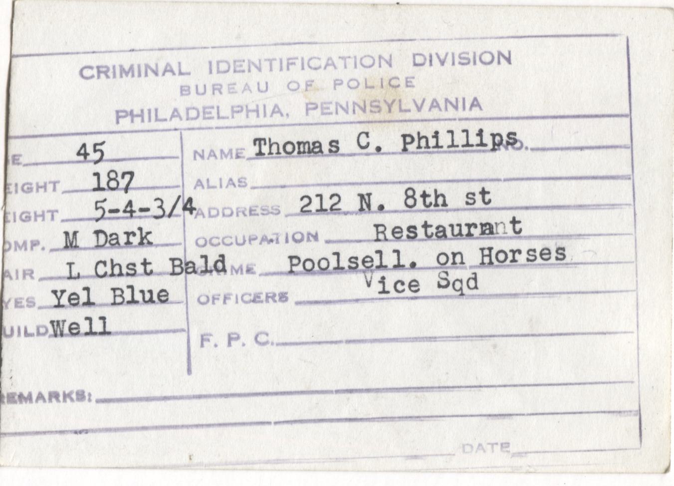 Thomas C. Phillips Mugshot - Arrested on 5/10/1946 for Poolselling on Horses