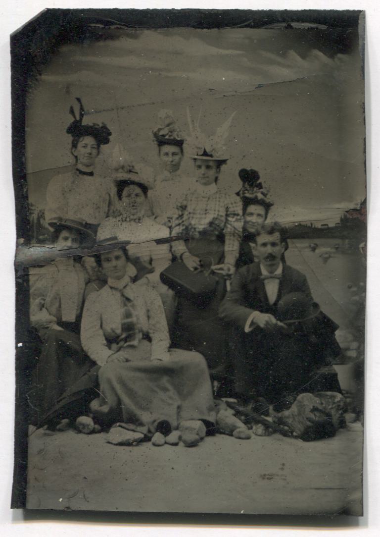 This tintype measures approximately 2.5 x 3.5 inches, plus or minus 1/2 inch, the approximate size of a sixth plate photograph.