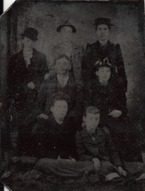 Tintype Photograph of a Group of Seven People in Three Rows