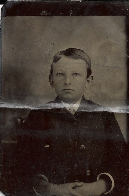 This tintype measures approximately 2.5 x 3.5 inches, plus or minus 1/2 inch.