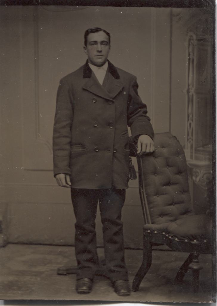 Tintype Photograph of Standing Man Wearing a Peacoat