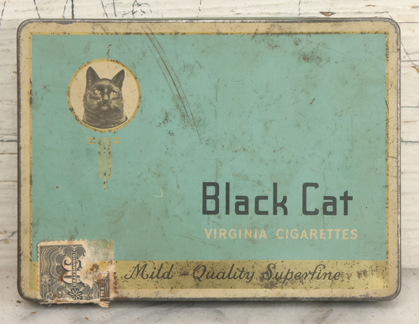 Lot 012 - Vintage Black Cat Virginia Cigarettes Tin, "Mild Quality, Superfine," Made In Canada