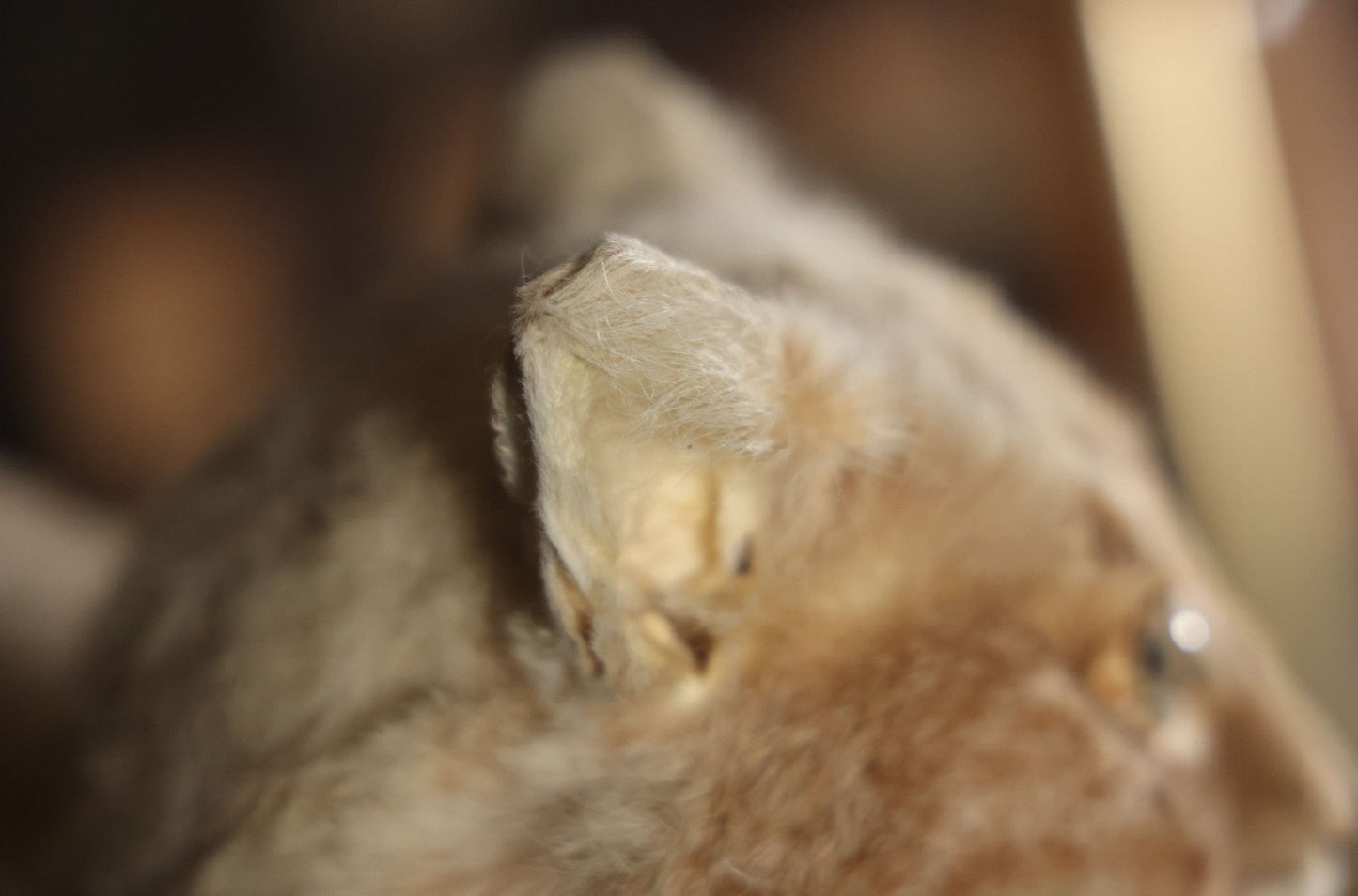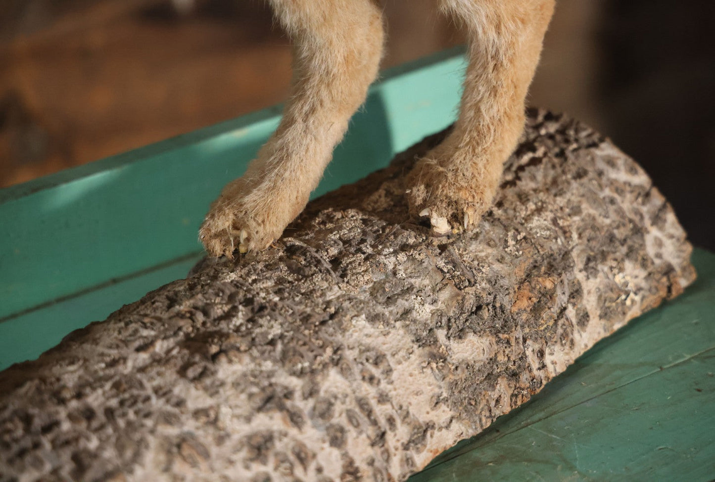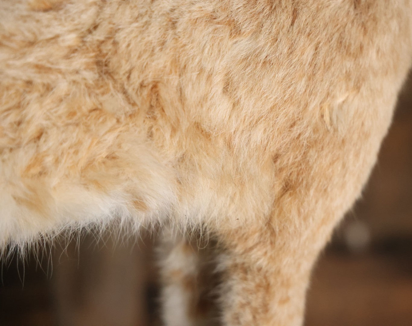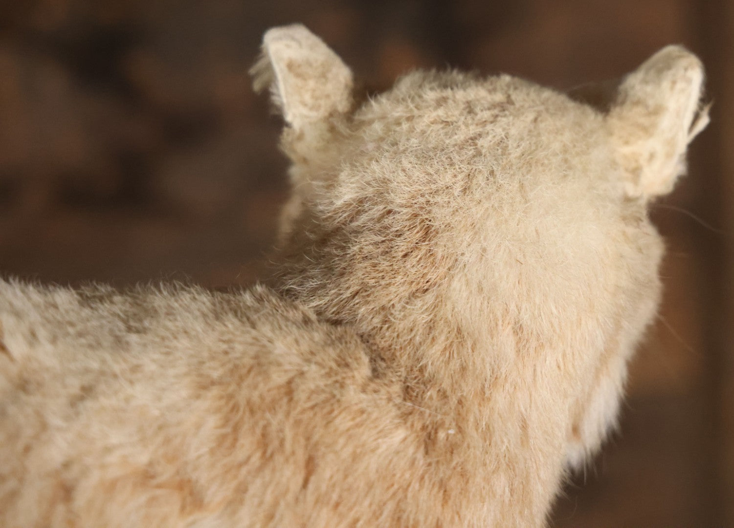 Overall good condition, some wear and tear, particularly to the paws and ears. See photos. Overall height approximately 22", base dimensions 25-1/2" x 9".