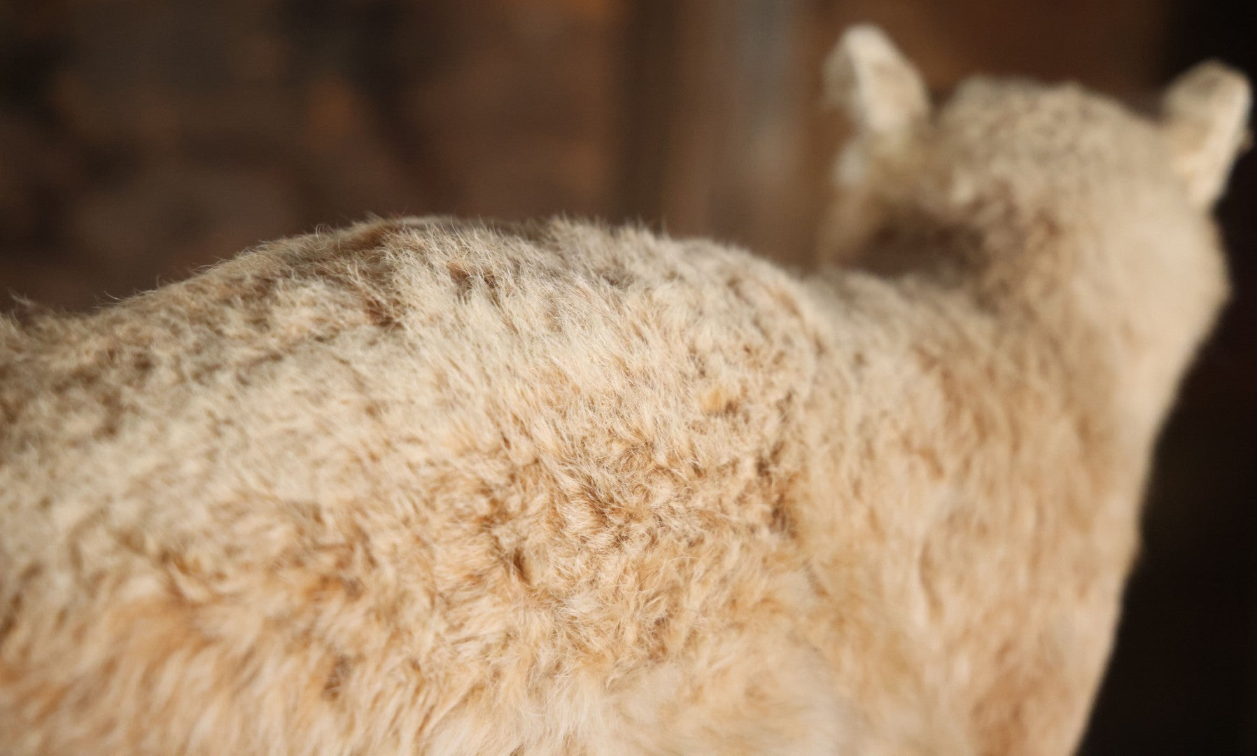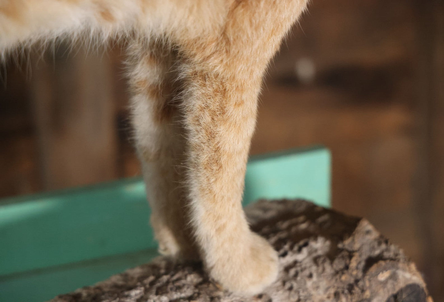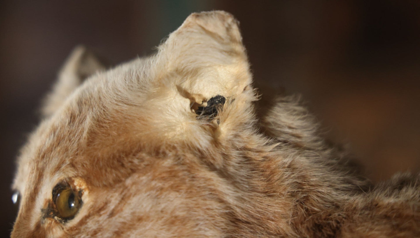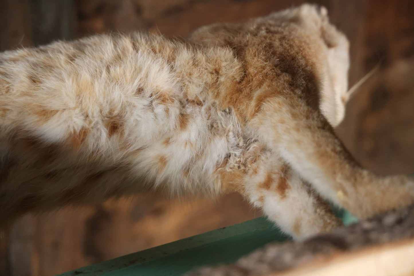 Overall good condition, some wear and tear, particularly to the paws and ears. See photos. Overall height approximately 22", base dimensions 25-1/2" x 9".