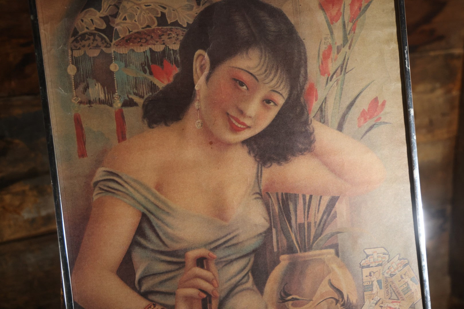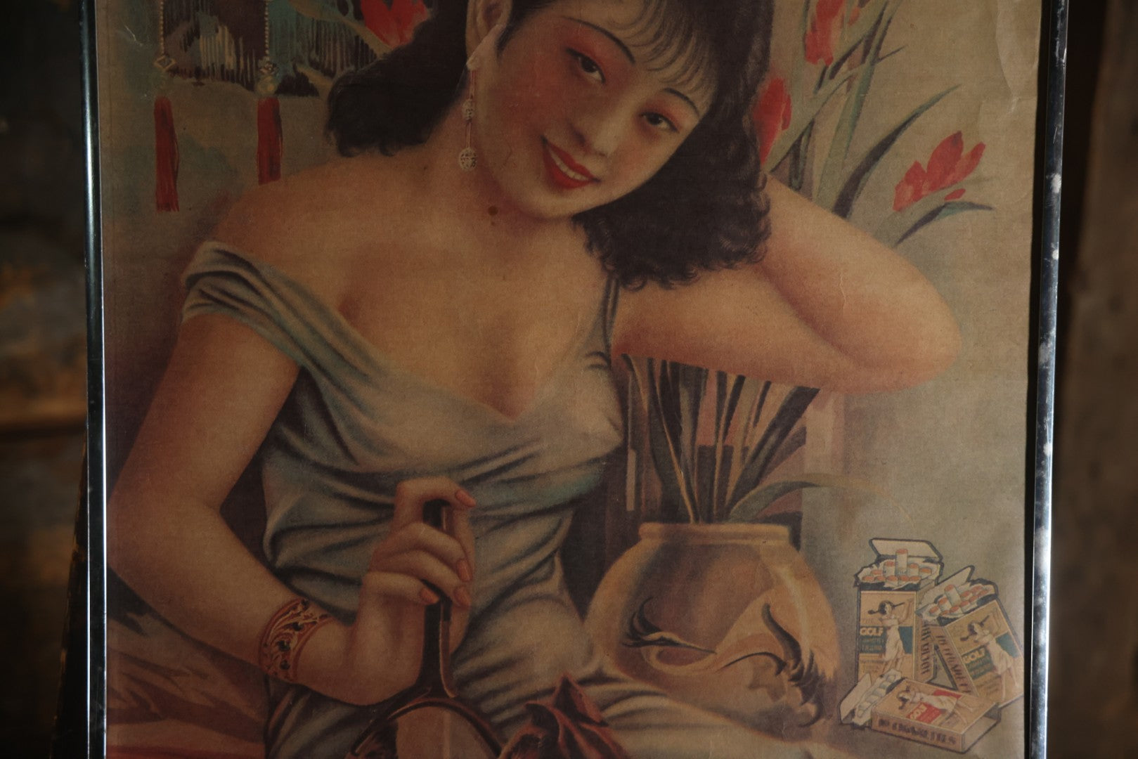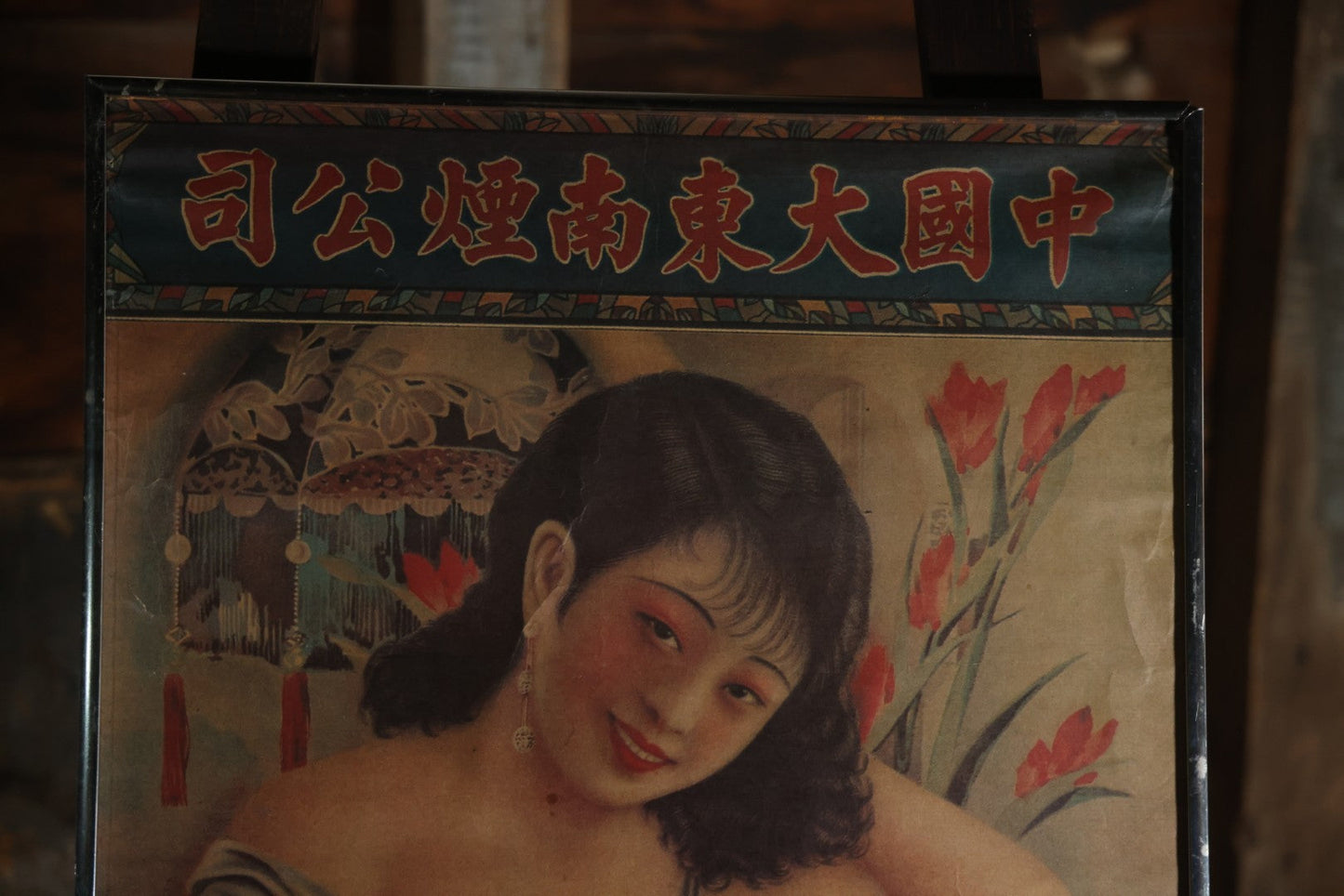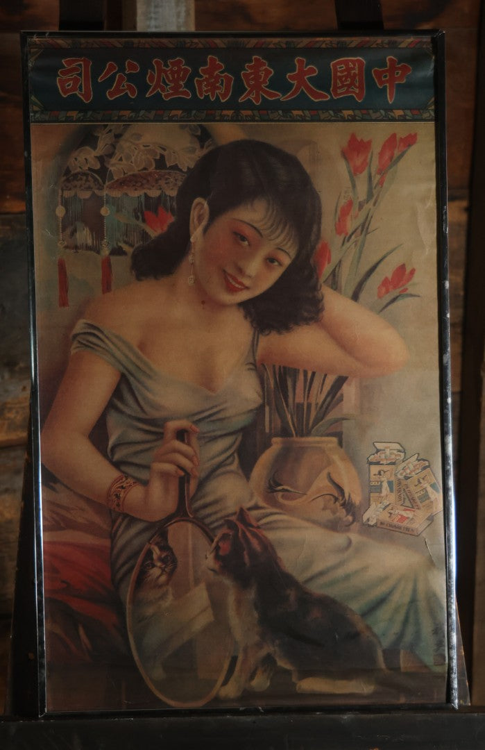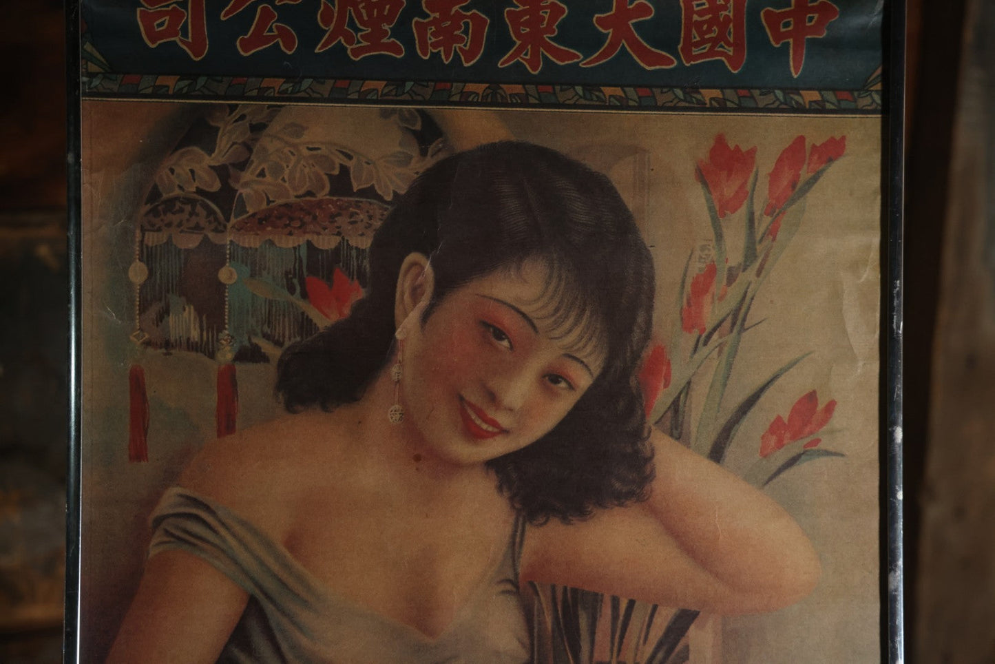 Vintage Chinese Tobacco Advertising Company, Greater Southeast China Tobacco Company, 中國大東南煙公司 (Zhōngguó Dàdōngnán Yān Gōngsī), "Shanghai Girl" Poster, In Frame, 19" x 30-7/8"