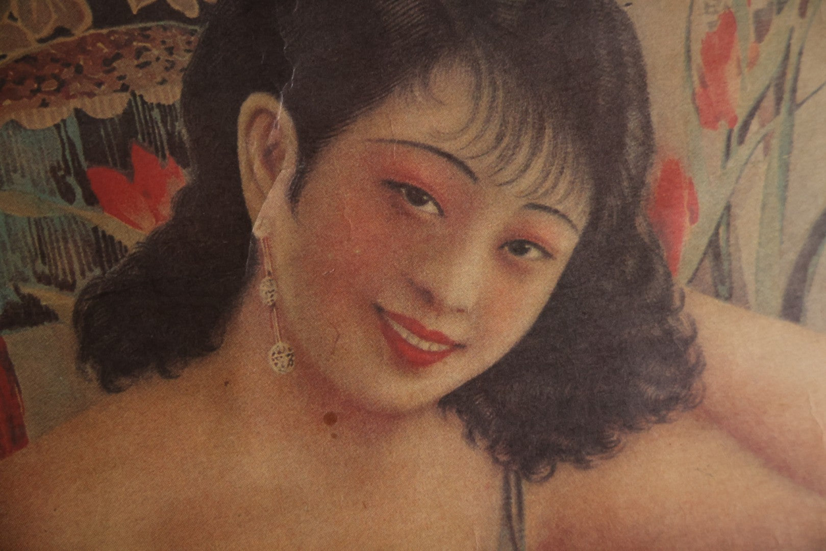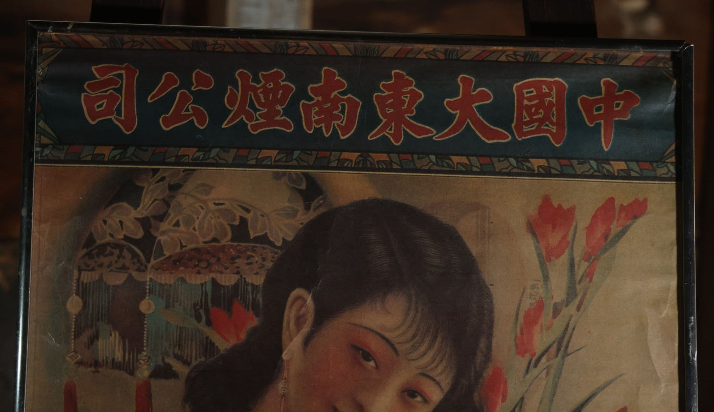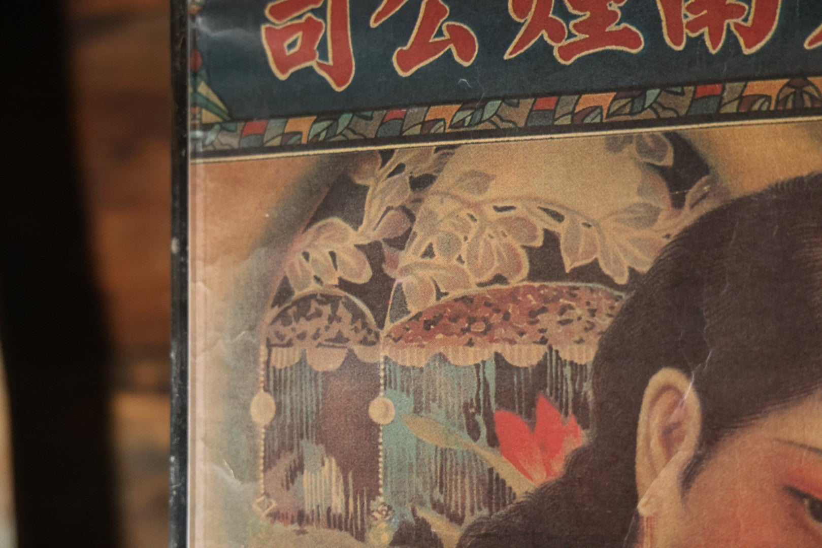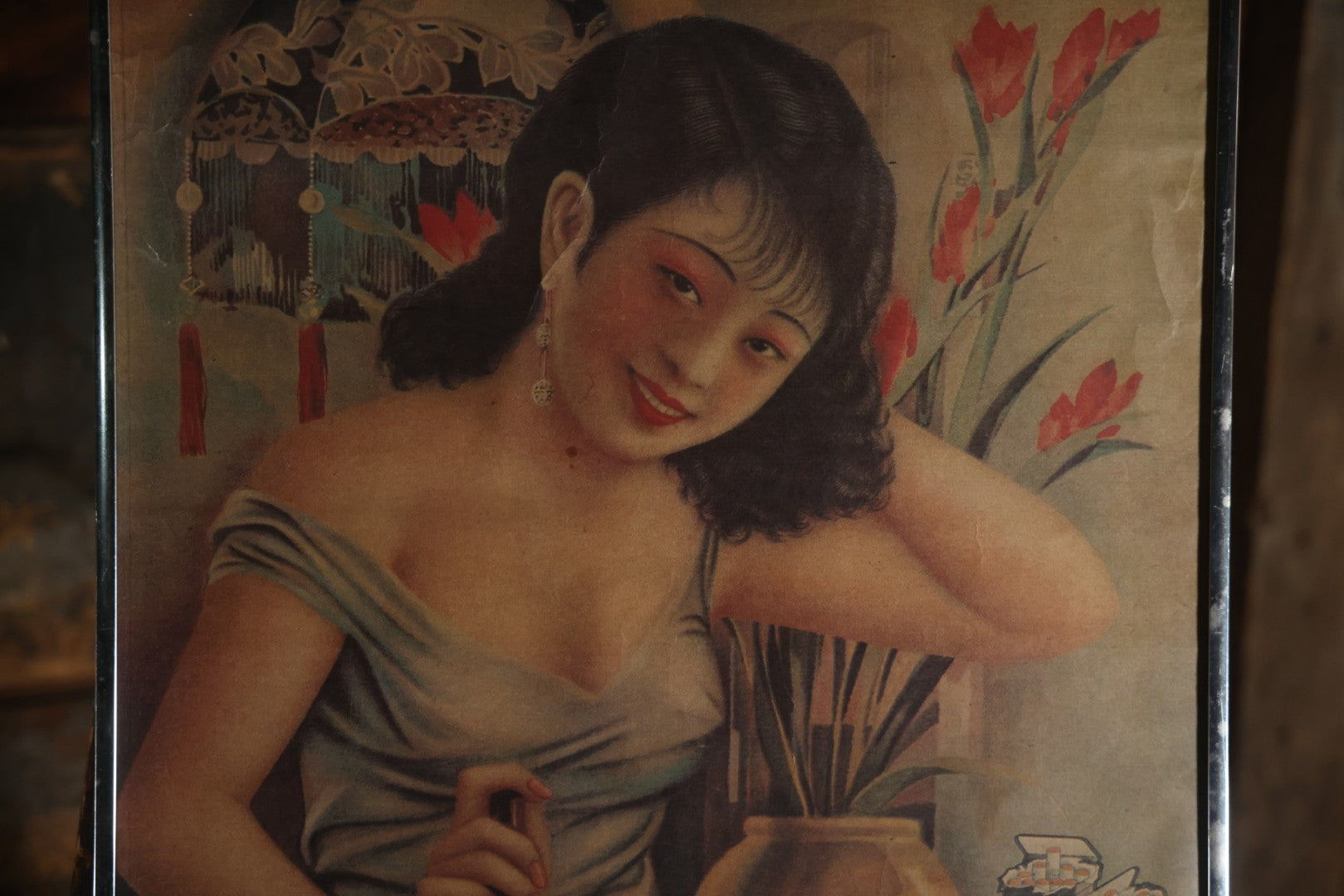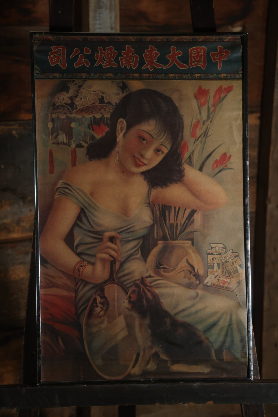 Vintage Chinese Tobacco Advertising Company, Greater Southeast China Tobacco Company, 中國大東南煙公司 (Zhōngguó Dàdōngnán Yān Gōngsī), "Shanghai Girl" Poster, In Frame, 19" x 30-7/8"
