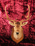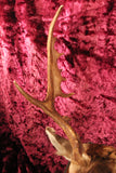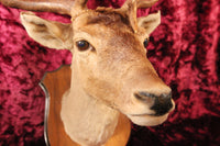 Here is a very fine vintage fallow deer taxidermy shoulder mount with a fantastic set of antlers. According to writing on the back of the mount shield, the head came from taxidermist Norm Hildreth (sp?) of Antrim, NH in approximately 1978. It was an unclaimed mount from a customer that was shot in New Hampshire. The mount was originally given as a gift from Don to Dona.