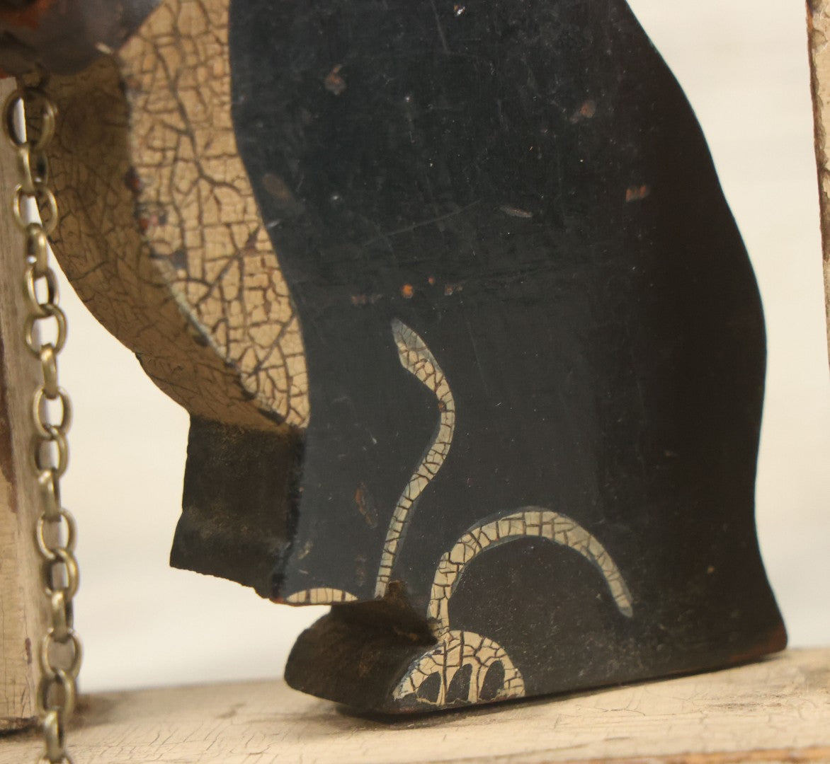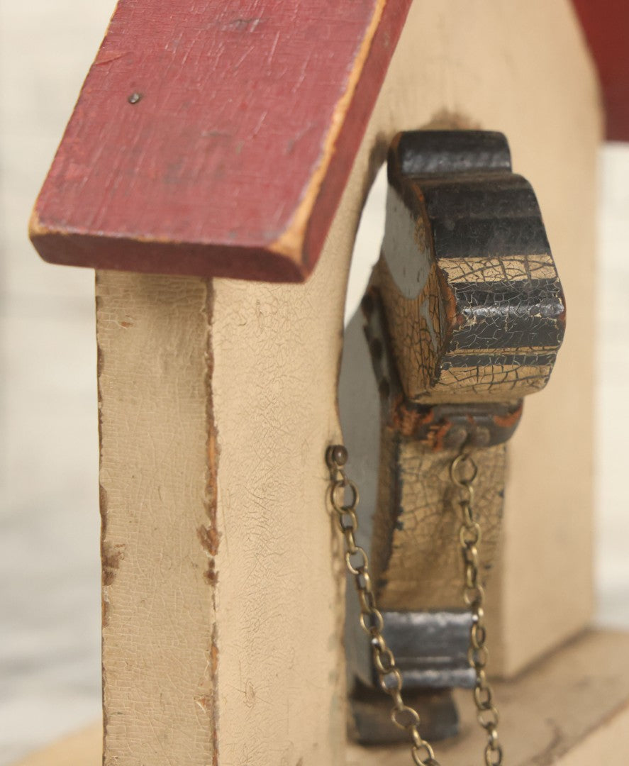 Lot 025 - Vintage Folk Art Boston Terrier Hand Painted, Hand Cut Wooden Door Stop With White House, Red Roof, Single Dog With Collar And Chain, Note Damaged Foot