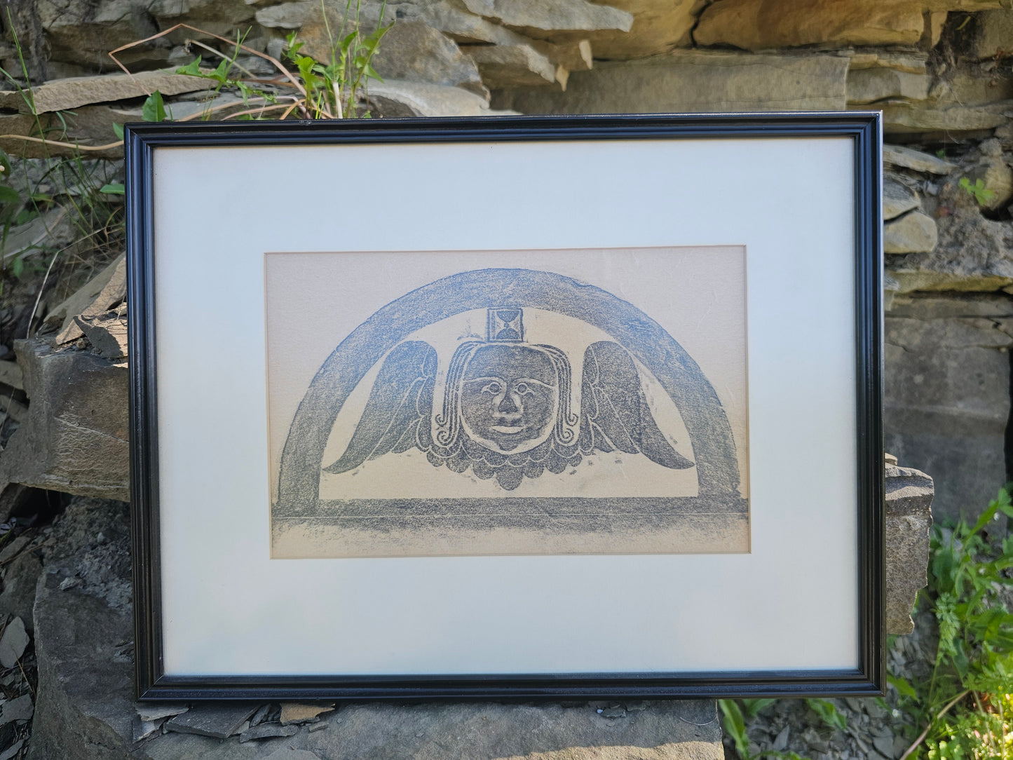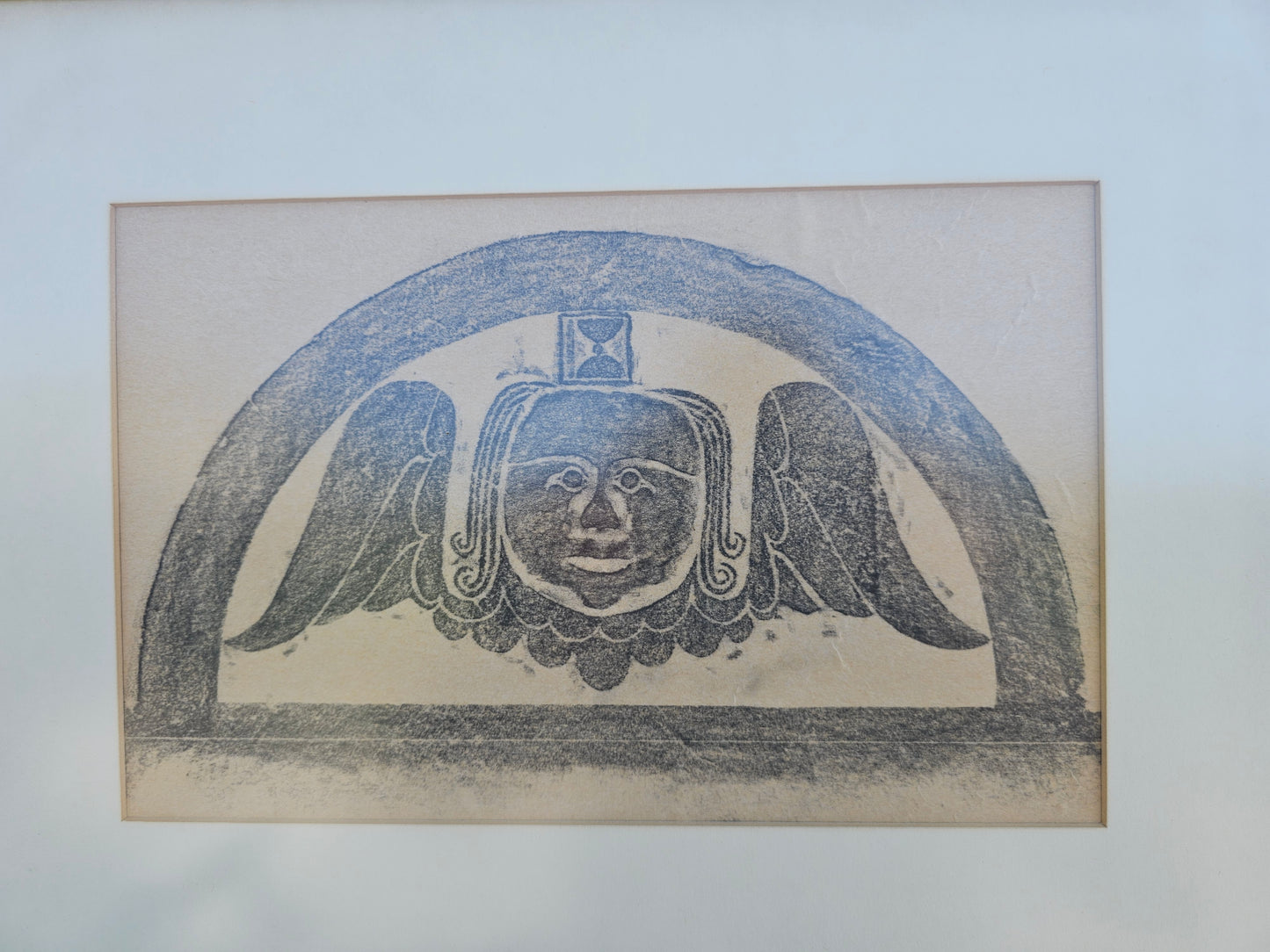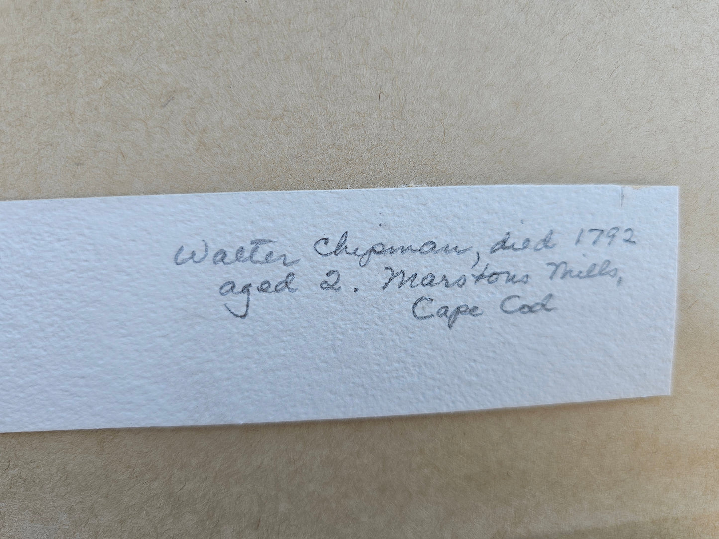 Vintage Framed Cape Cod Grave Rubbing, Gravestone of Walter Chapman, Died 1792, Age 2
