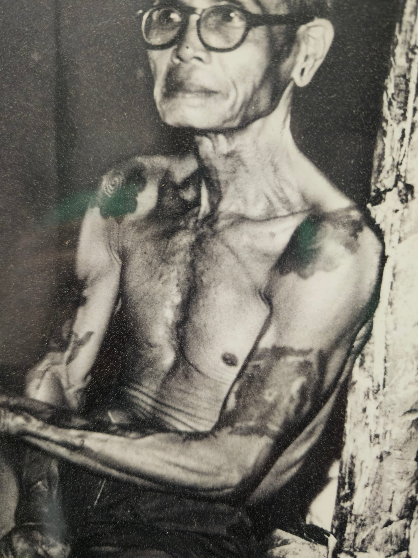 Vintage Framed Photo of Two Tattooed Individuals, Signed by Photographer Victor Friedmann, Titled "Friends, Borneo", 1981