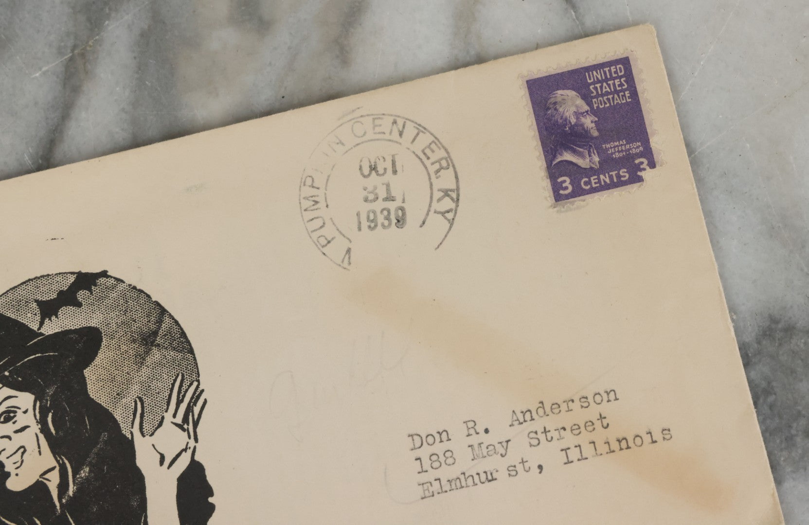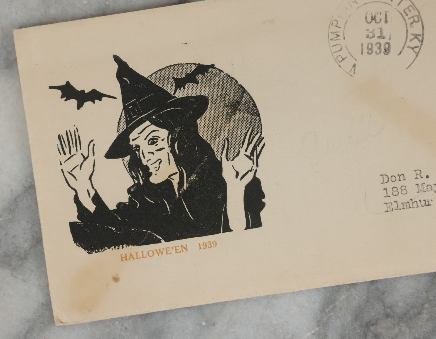 Lot 078 - Vintage Halloween Envelope With Laughing Witch And Flying Bats From Halloween 1939, Postmarked October 31, 1939, With Contents