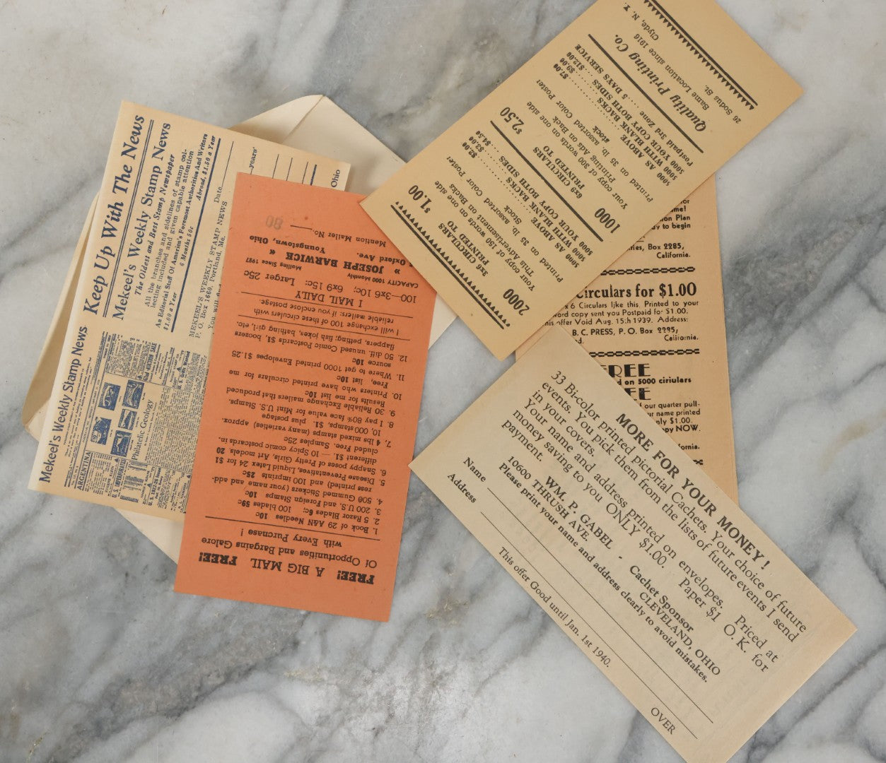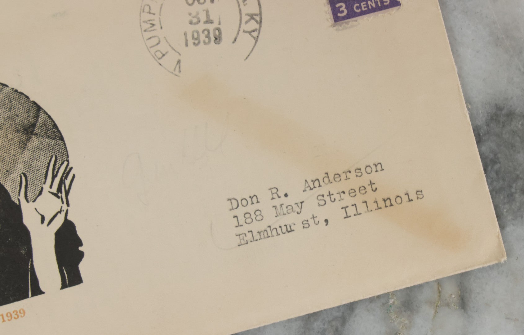 Your absentee bid for Lot 078 - Vintage Halloween Envelope With Laughing Witch And Flying Bats From Halloween 1939, Postmarked October 31, 1939, With Contents was successfully submitted—thank you for bidding with us!