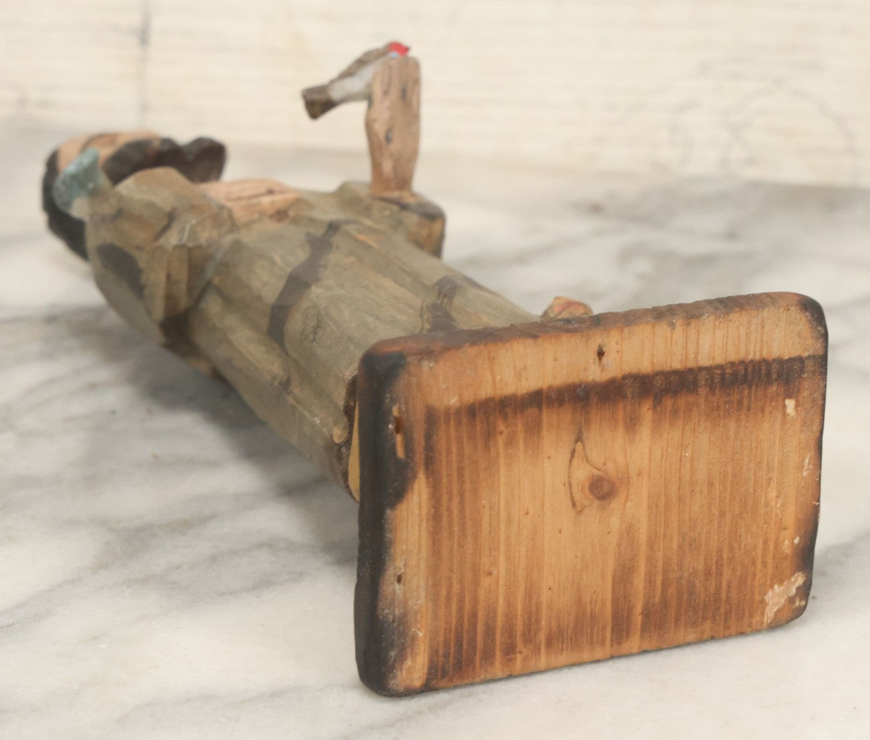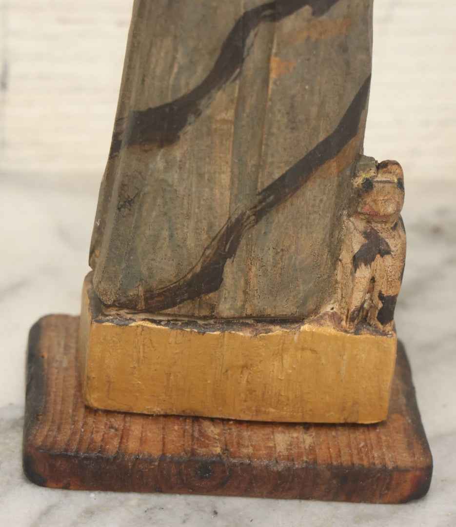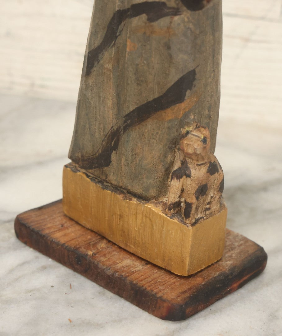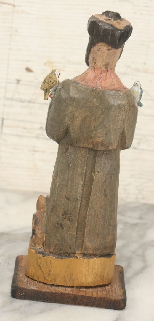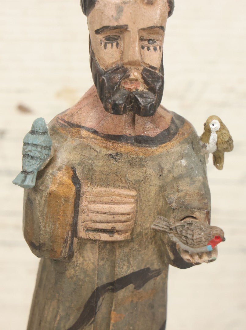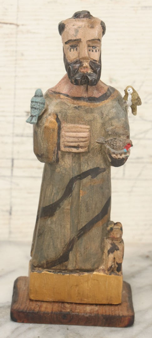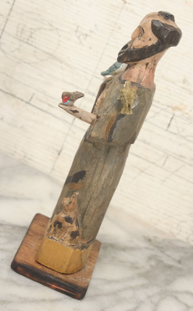 Lot 055 - Vintage Hand-Carved Wooden Saint Francis Figure With Parrot And Small Bird, Religious Folk Art Statue