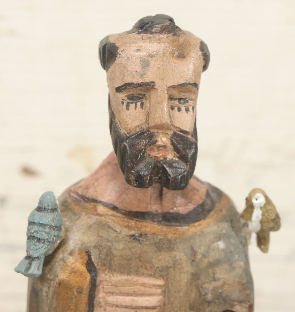 Your absentee bid for Lot 055 - Vintage Hand-Carved Wooden Saint Francis Figure With Parrot And Small Bird, Religious Folk Art Statue was successfully submitted—thank you for bidding with us!