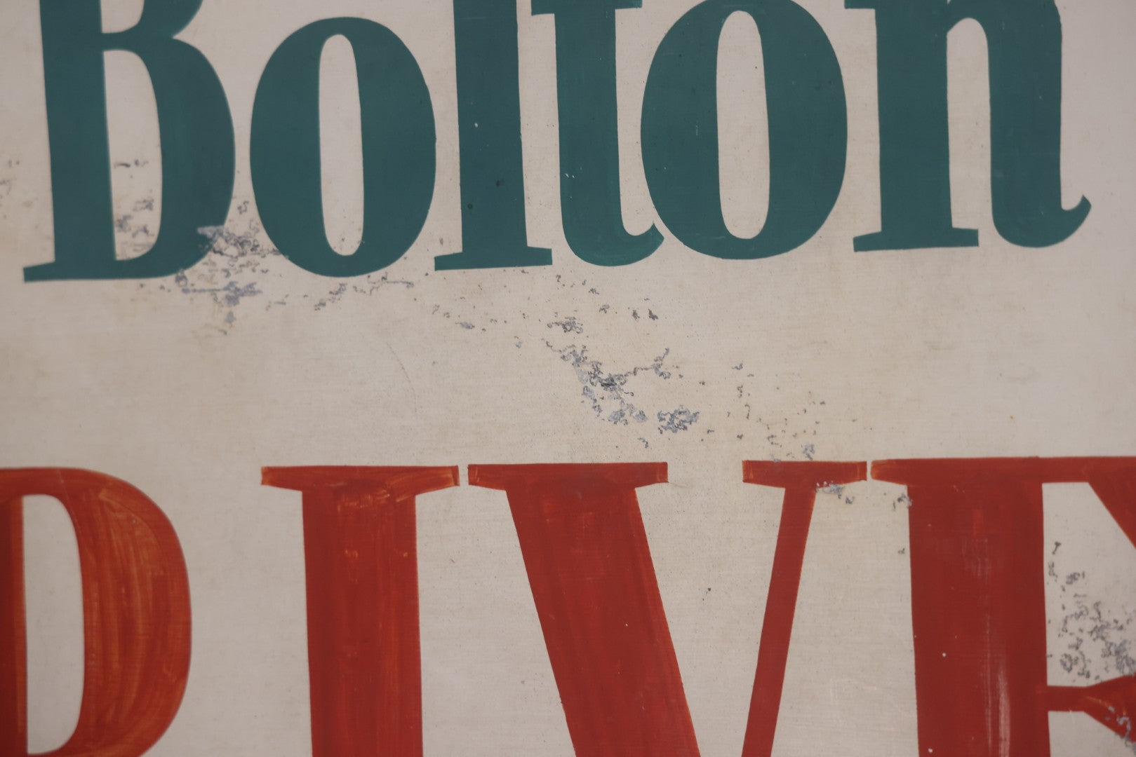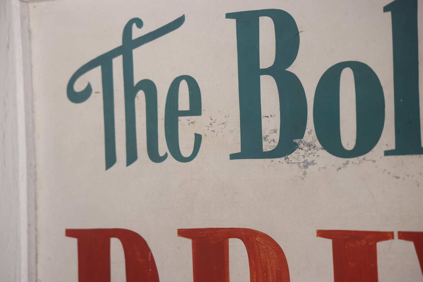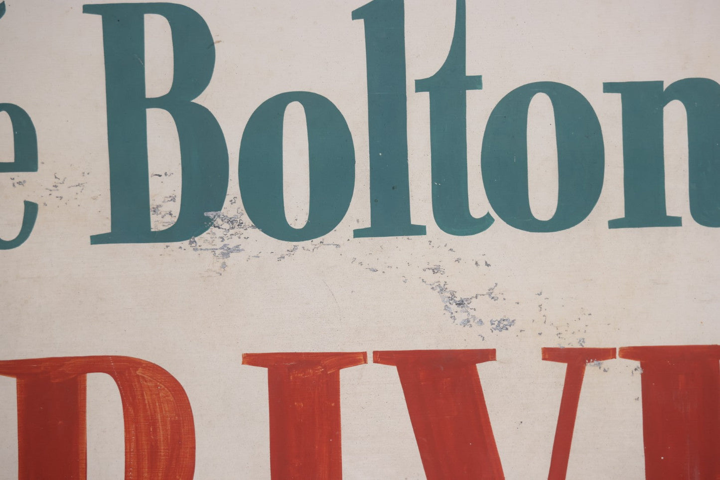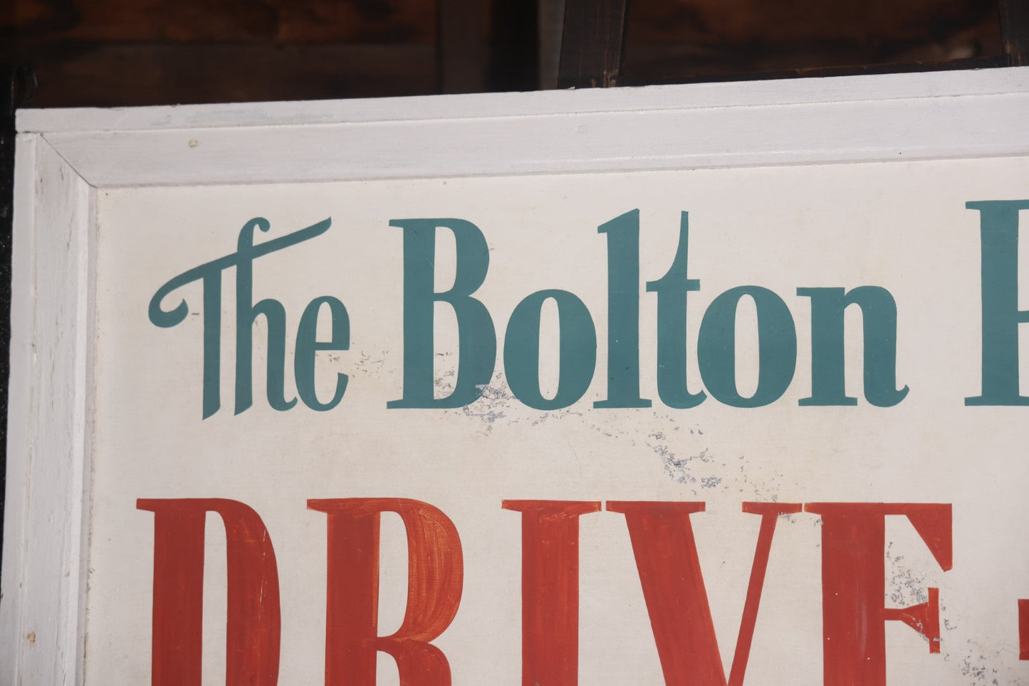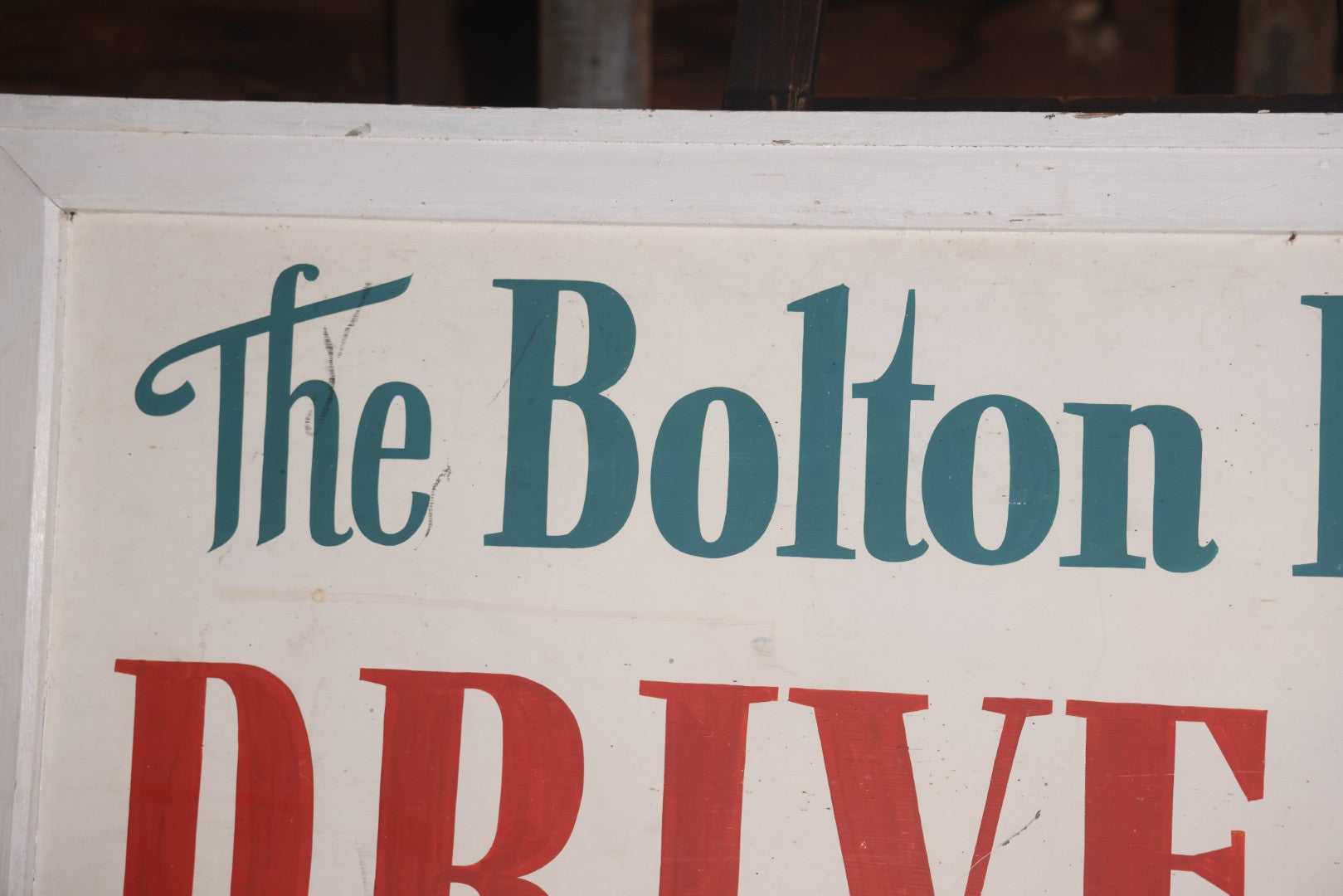 Vintage Hand Painted Sign For "The Bolton Pines Drive-In" Movie Theater, On Tin With Wood Frame, Cast Iron Hangers, Unknown Origin, Likely From New England, 52-1/2" x 27-3/4"