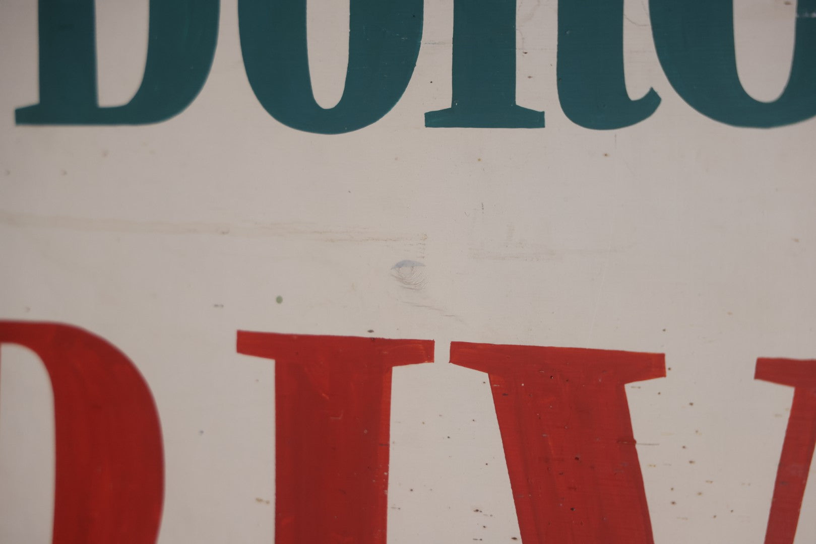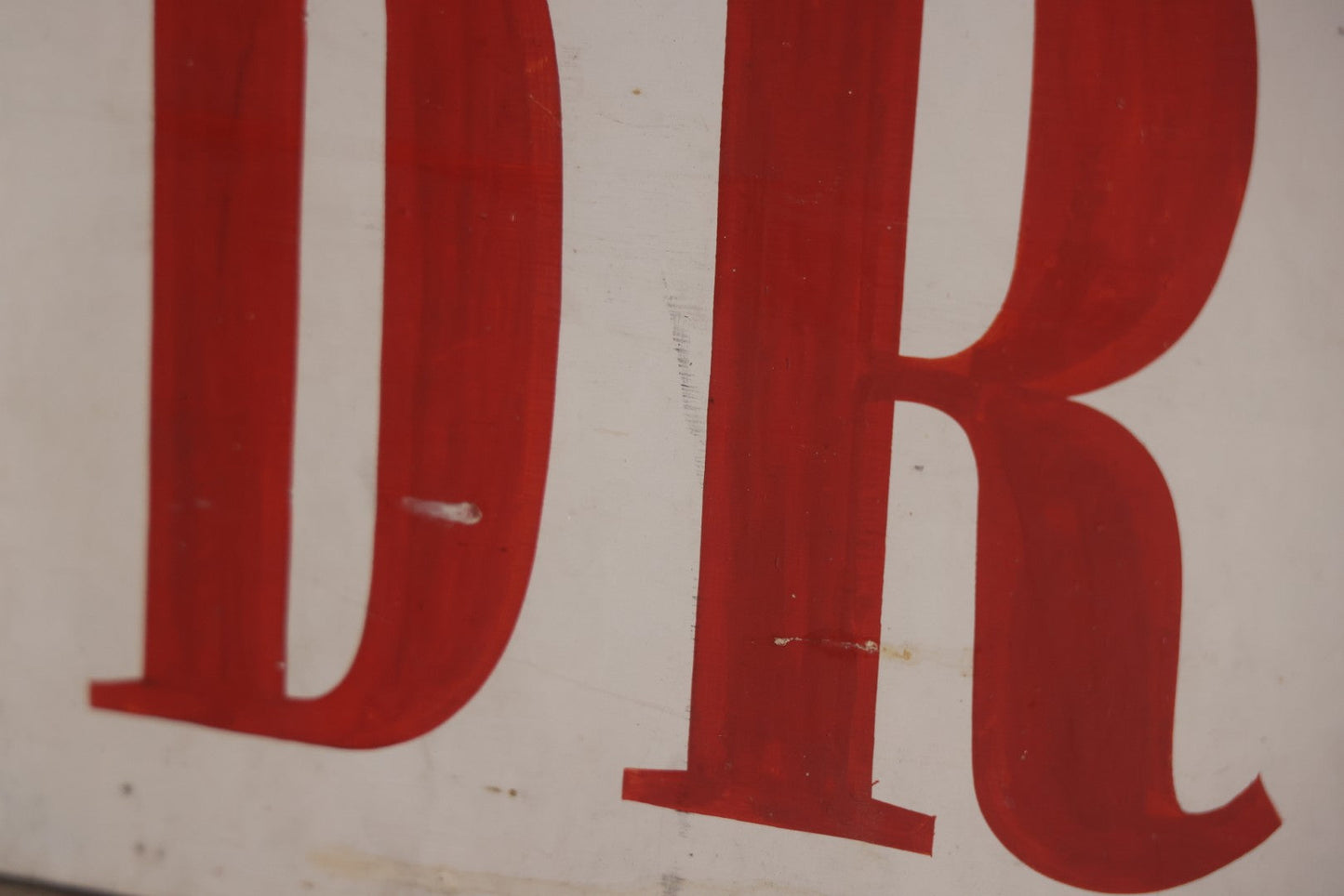 I was unable to determine where this sign came from, with the most likely candidate being Bolton, Connecticut, once home to the Milford Drive-In. Purhcased at an auction in Massachusetts.