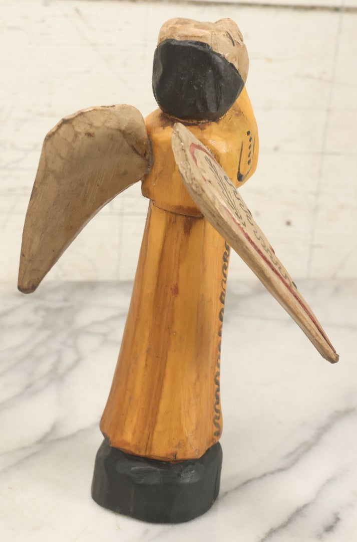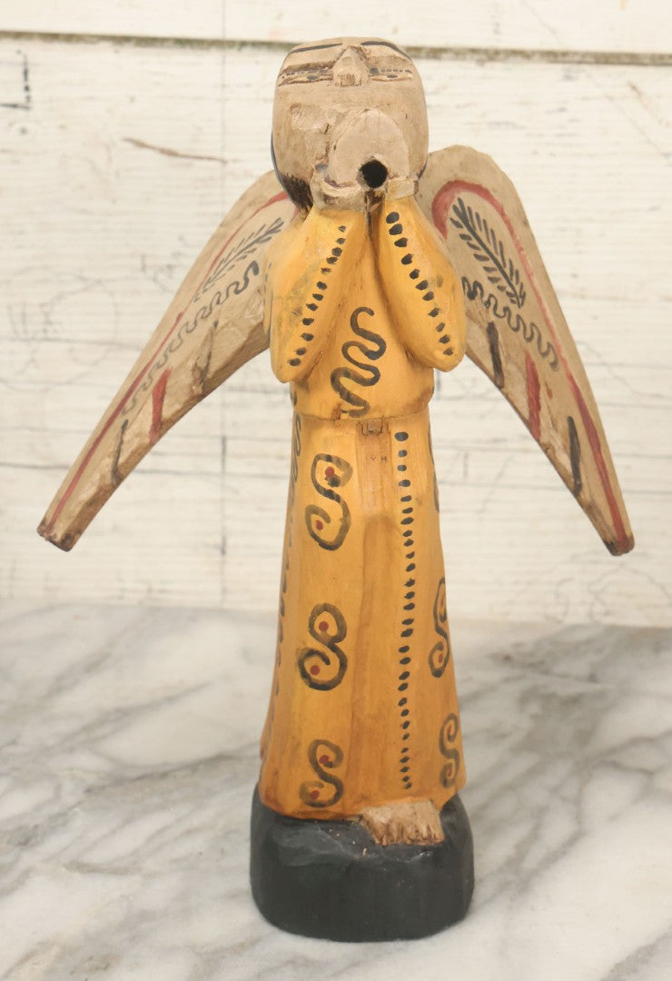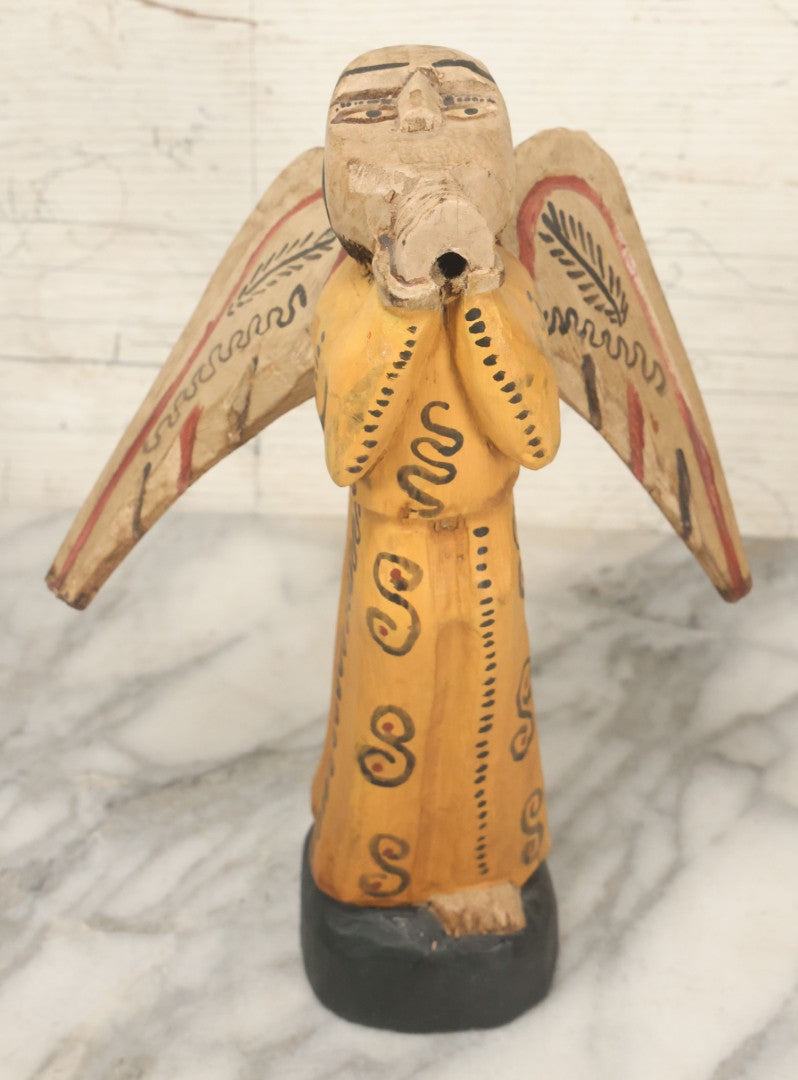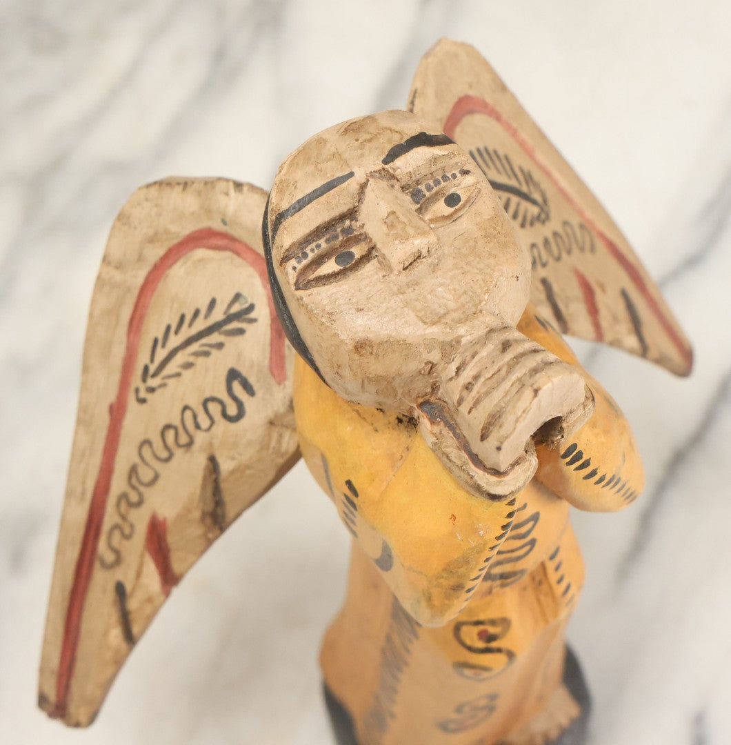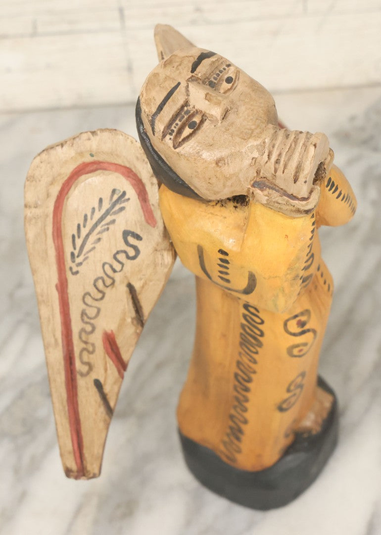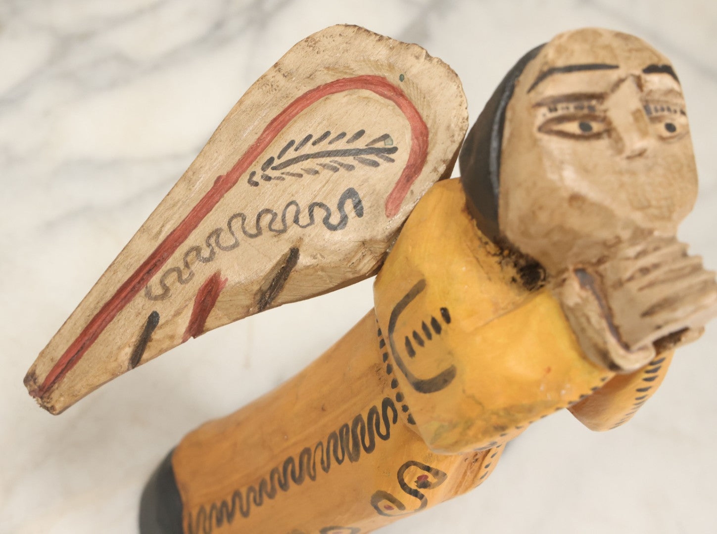 Lot 057 - Vintage Hand-Painted Wooden Folk Art Angel Figure, Primitive Religious Carving, Note Wear, Missing Horn