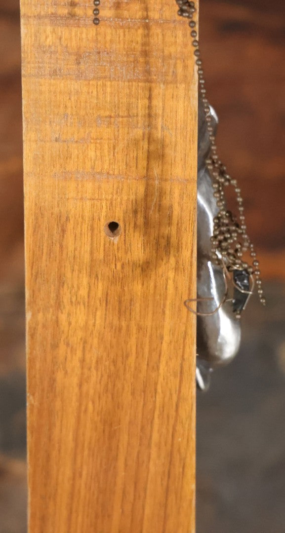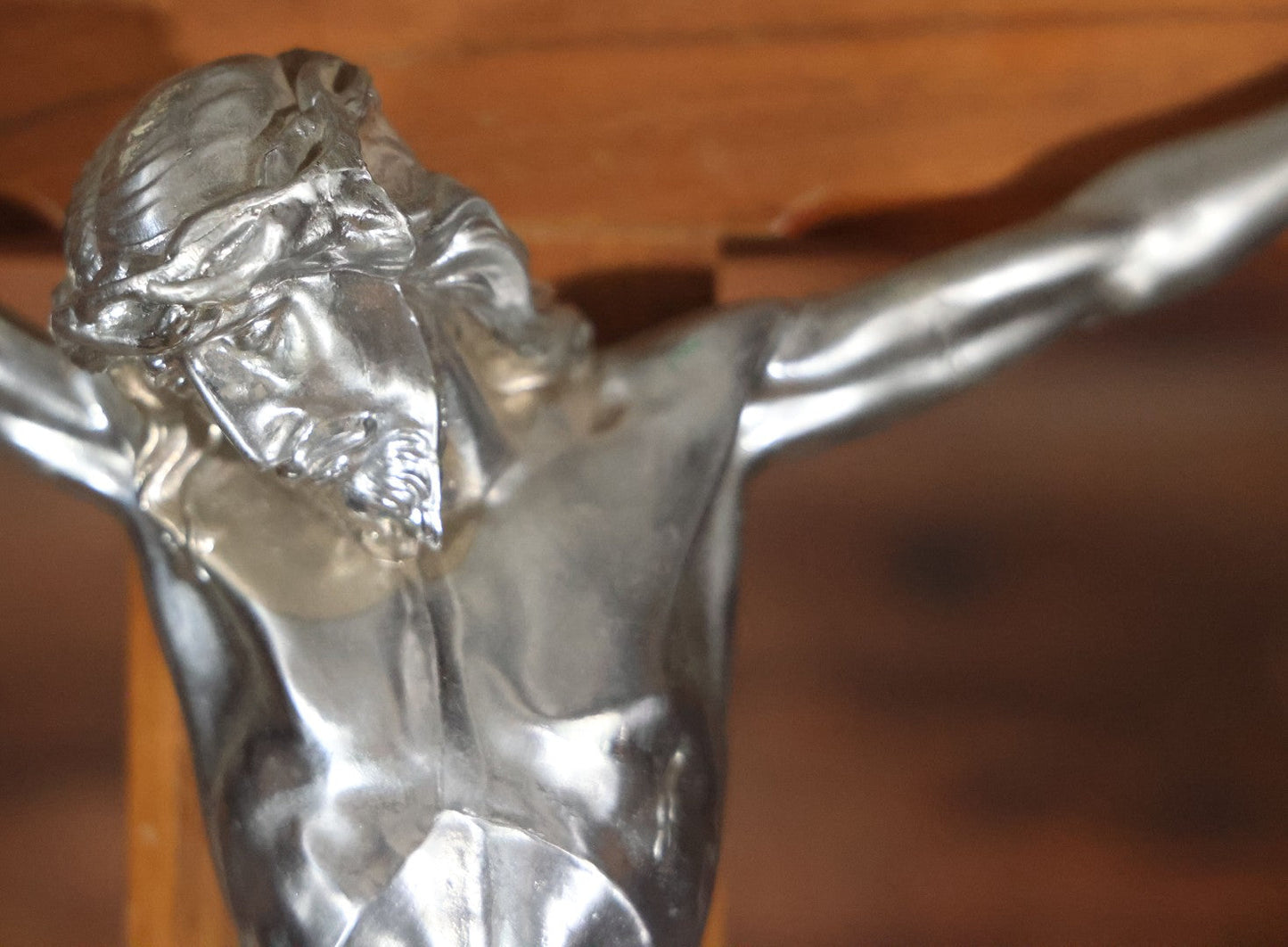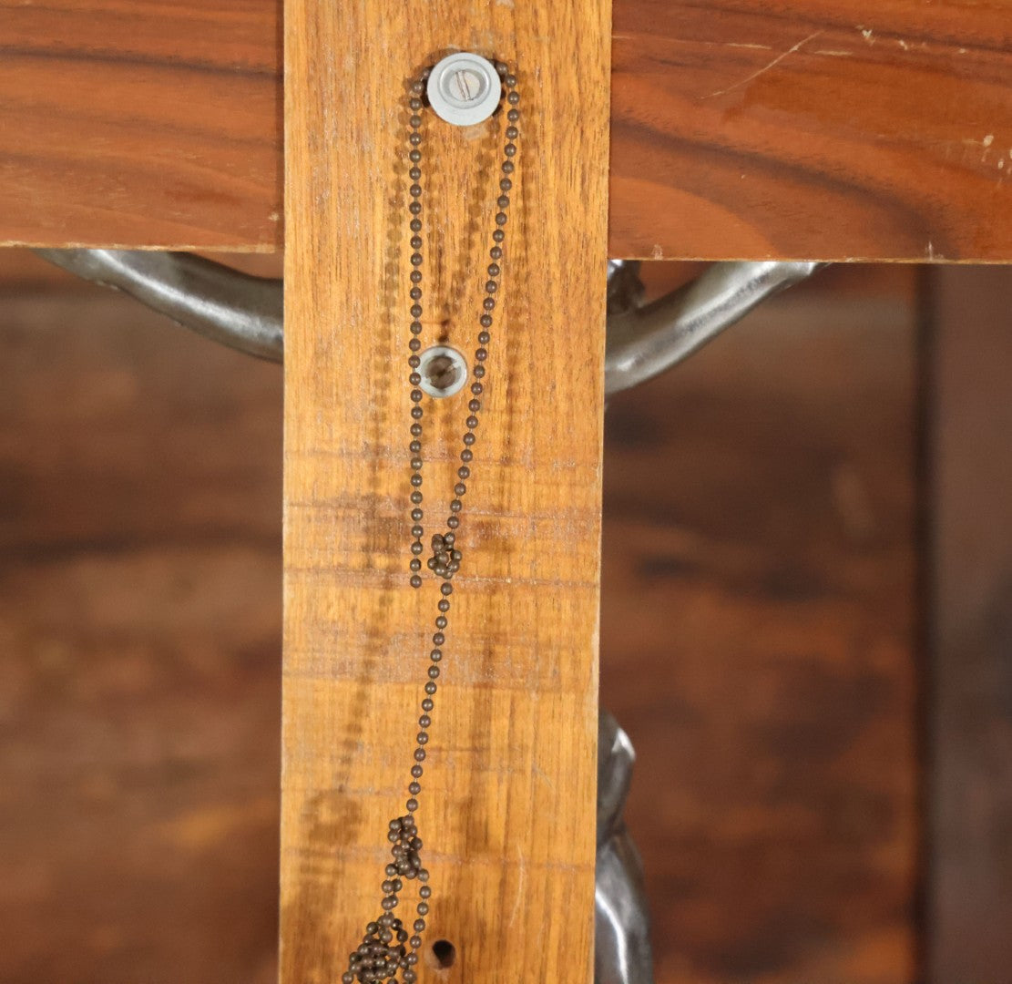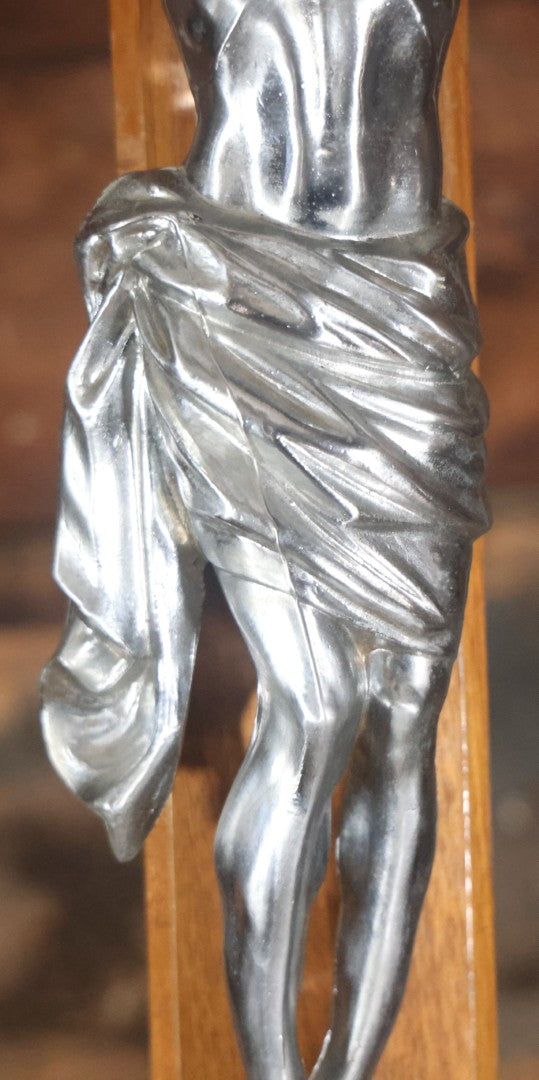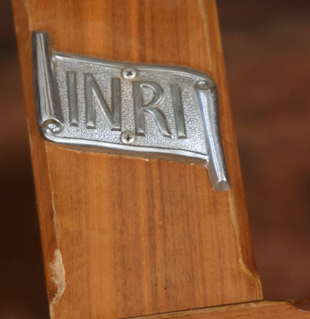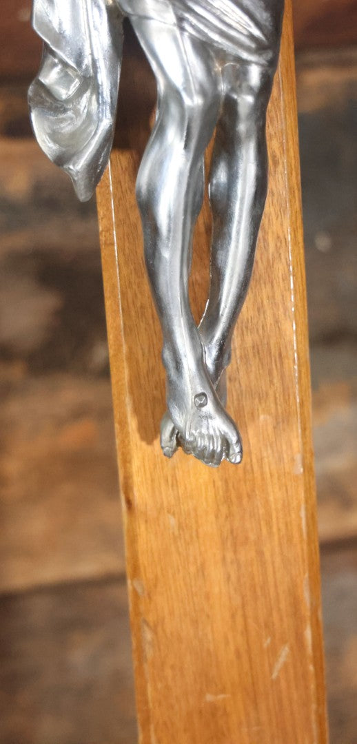 Various wear and tear. Crucifix hardware loosening slightly. Sold together. Dimensions are of crucifix only, note height of stand is adjustable.