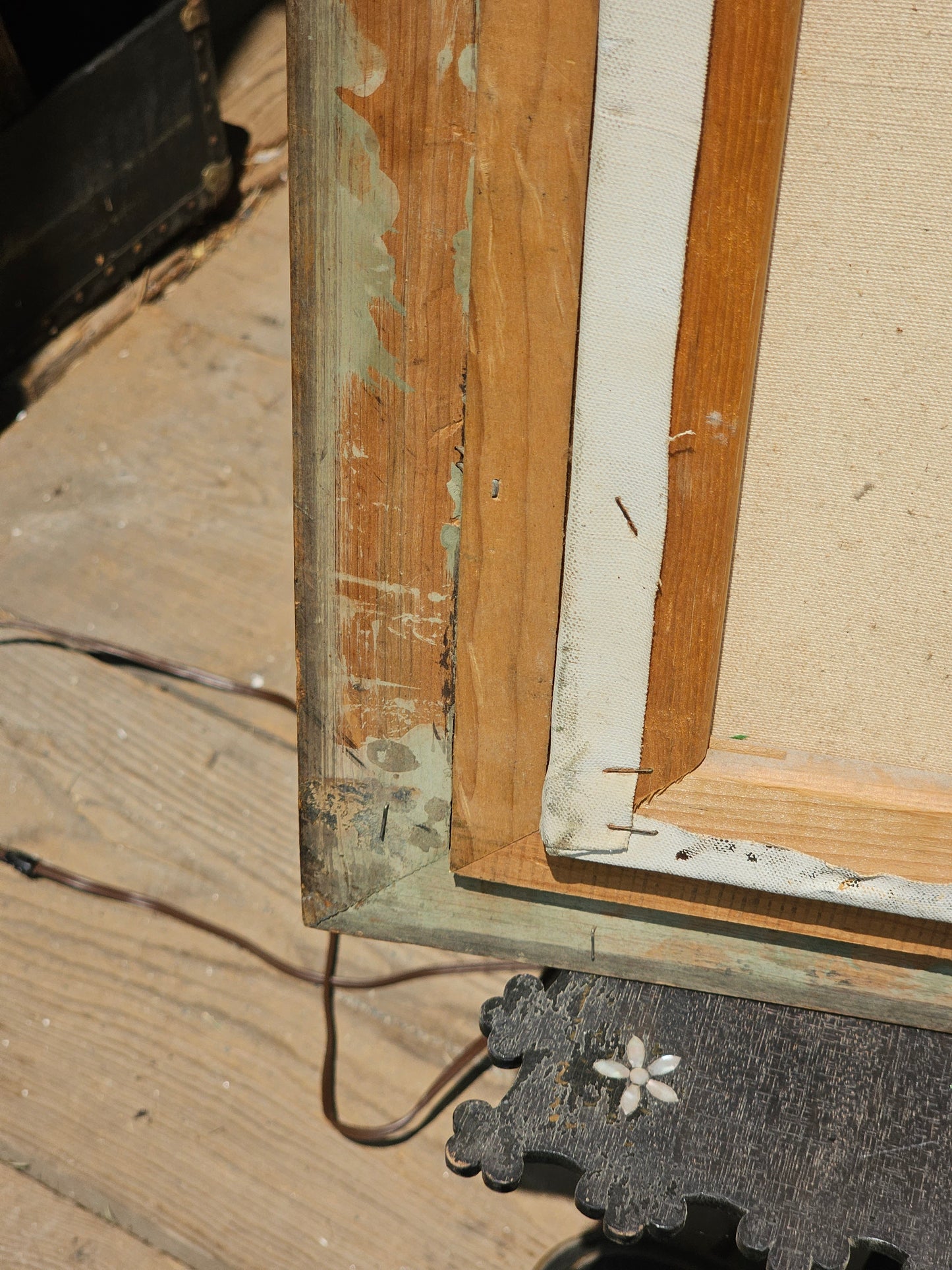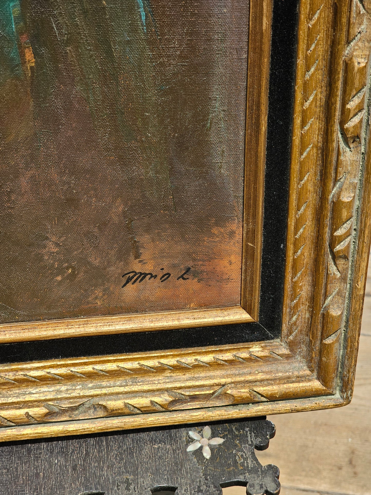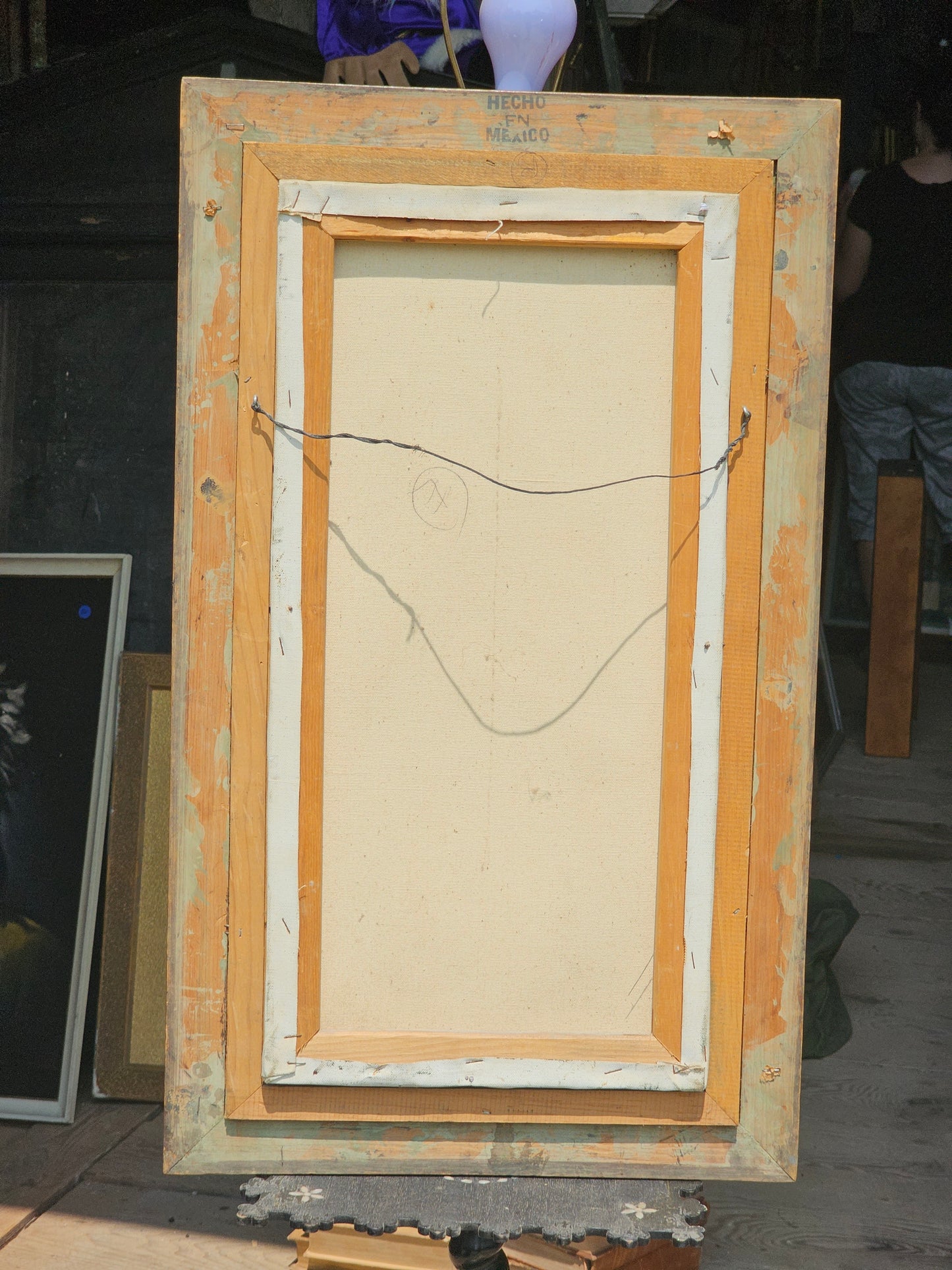 Vintage Mexican Nude Woman Oil on Canvas Framed Painting, Hecho en Mexico, Signed Mio L., 17.25" x 29"