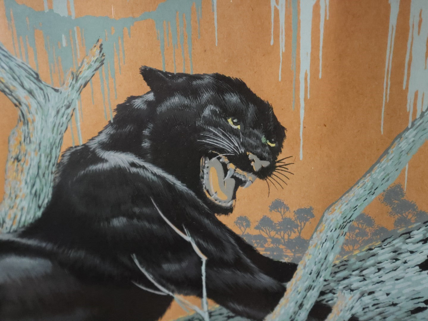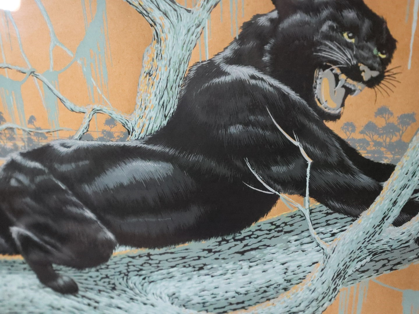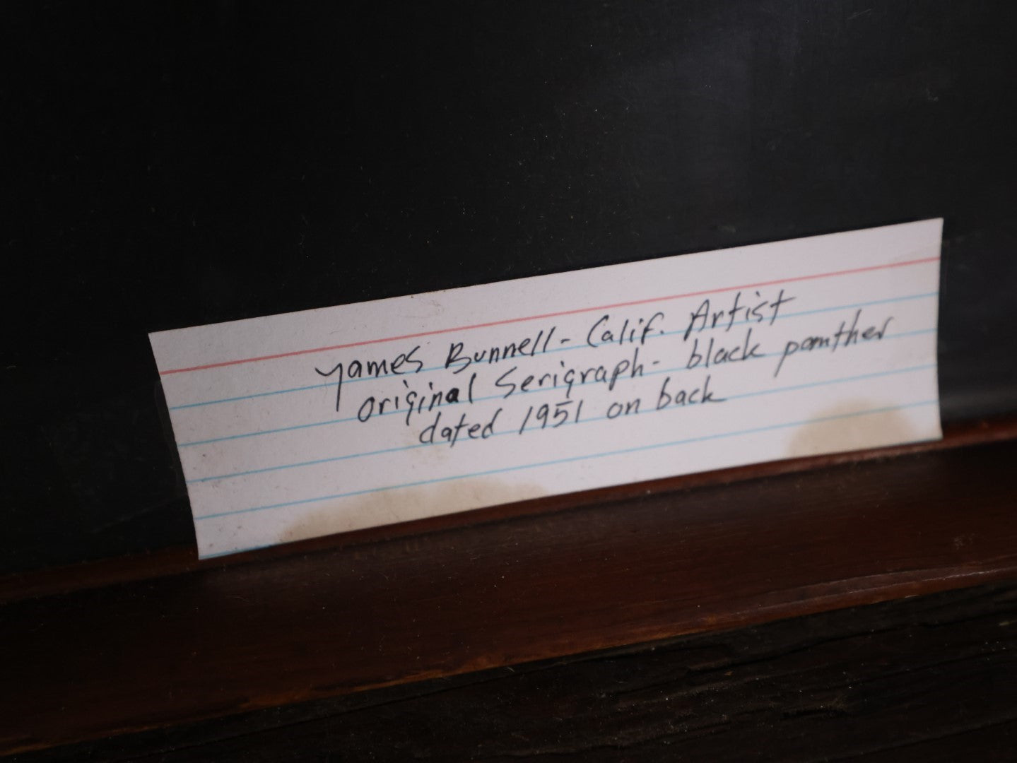 Vintage Mid-Century Serigraph Print Of A Black Panther By James Bunnell (California), 1951