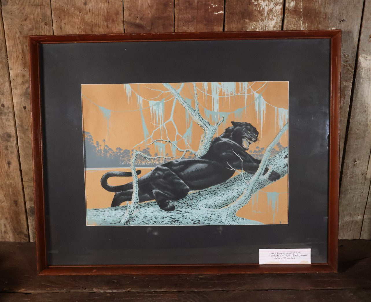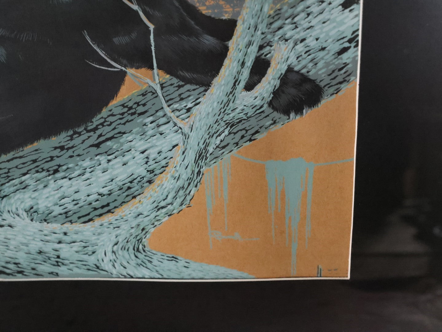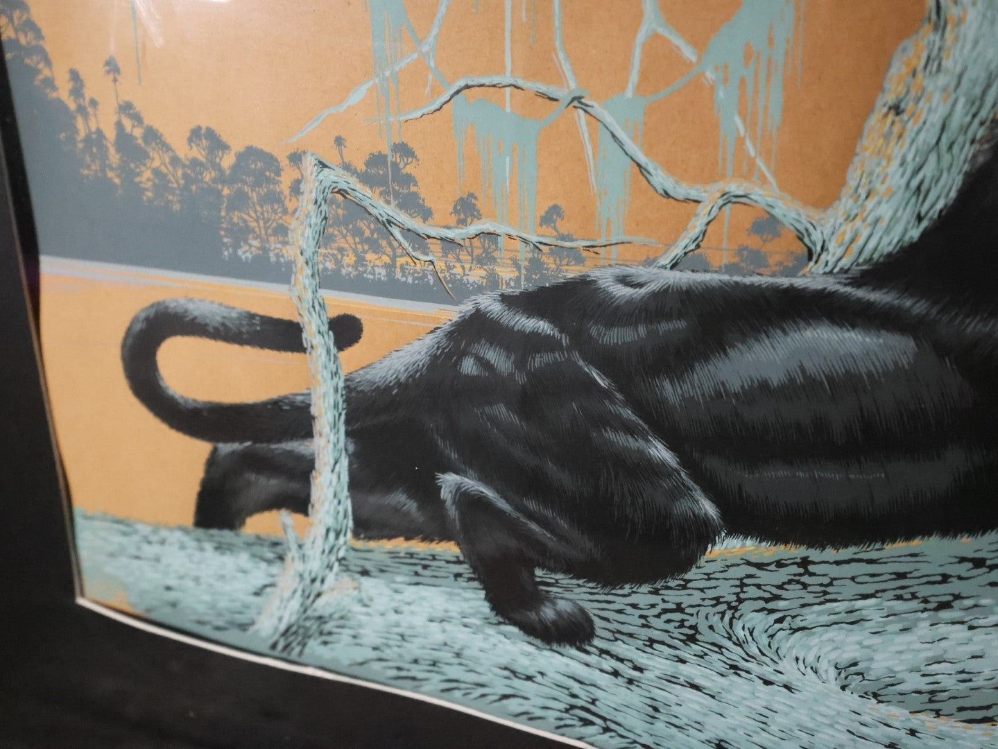 Vintage Mid-Century Serigraph Print Of A Black Panther By James Bunnell (California), 1951