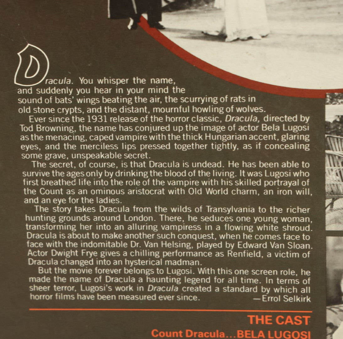 Lot 009 - Vintage Movie Laserdisc Of The Original "Dracula" (1931) Starring Bela Lugosi, R.C.A. Videodiscs / M.C.A. Videodiscs Inc., Copyright 1983