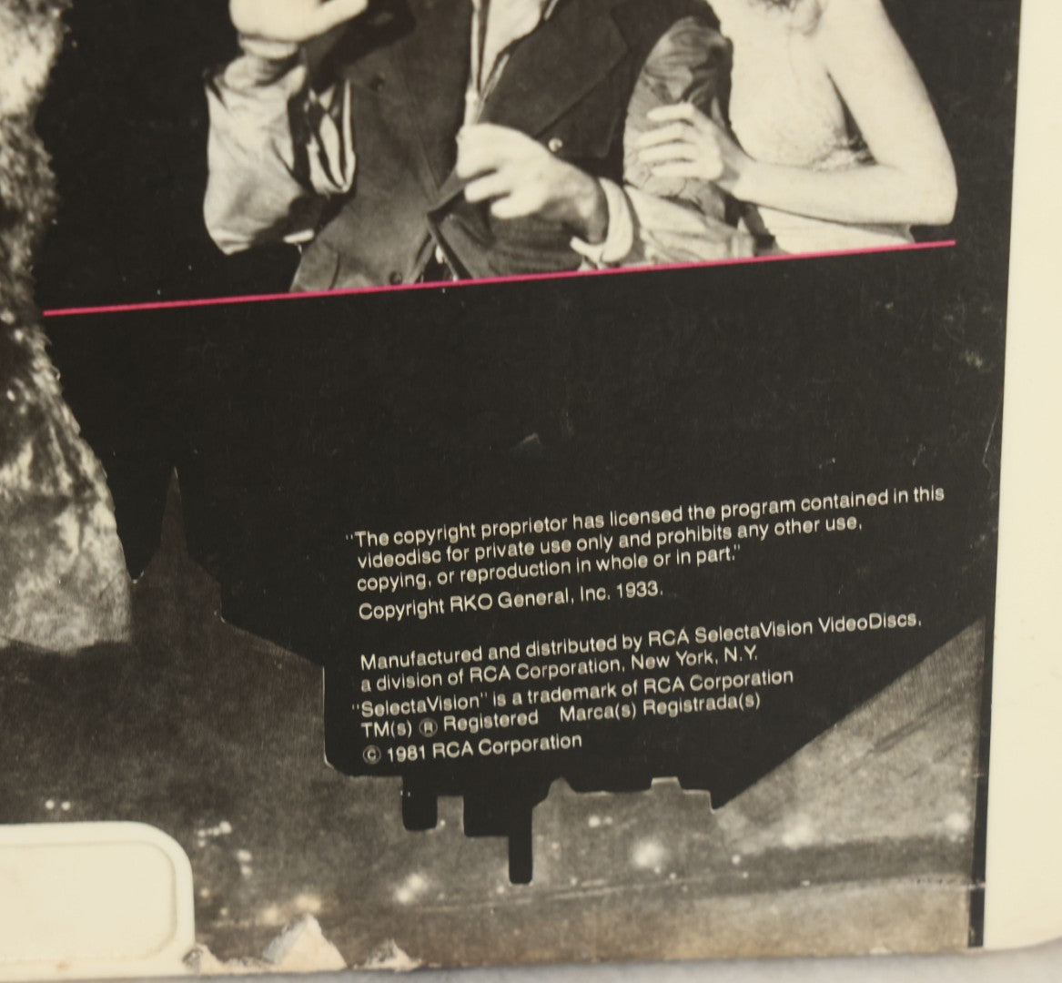 Lot 010 - Vintage Movie Laserdisc Of The Original "King Kong" (1933), An R.K.O. Pictures Presentation, R.C.A. Selectavision Videodiscs, Copyright 1981