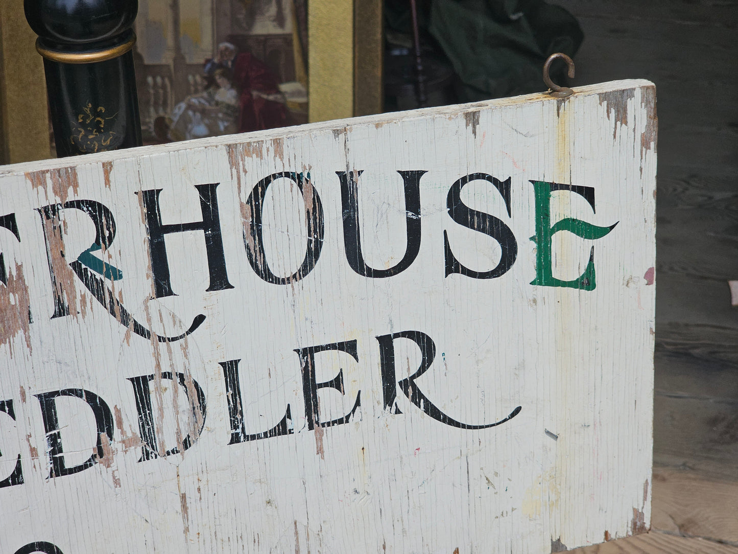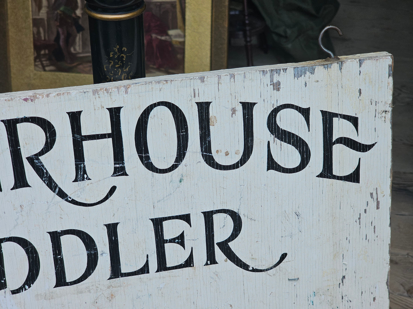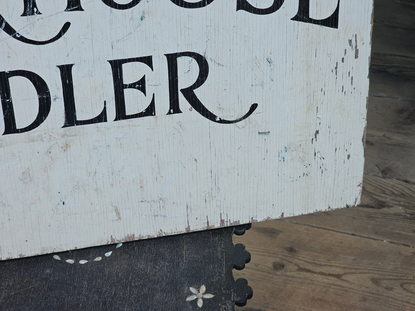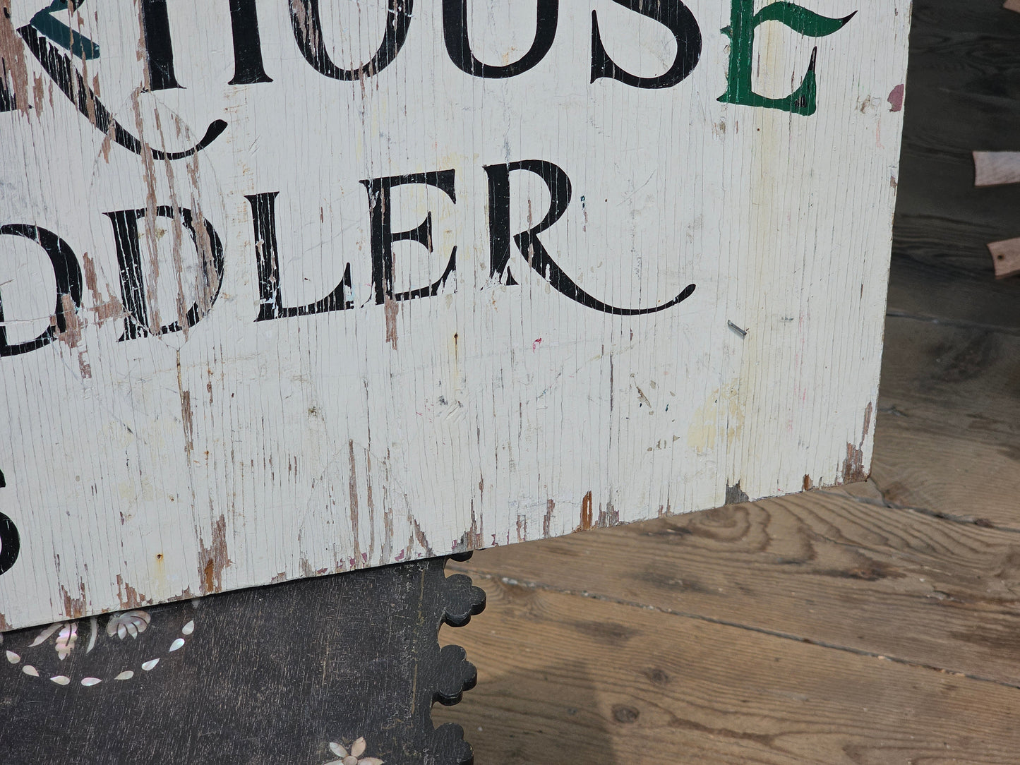Vintage Powerhouse Peddler Antiques Store Hand Painted Hours Sign on Wood, With Hooks, 24" x 13"