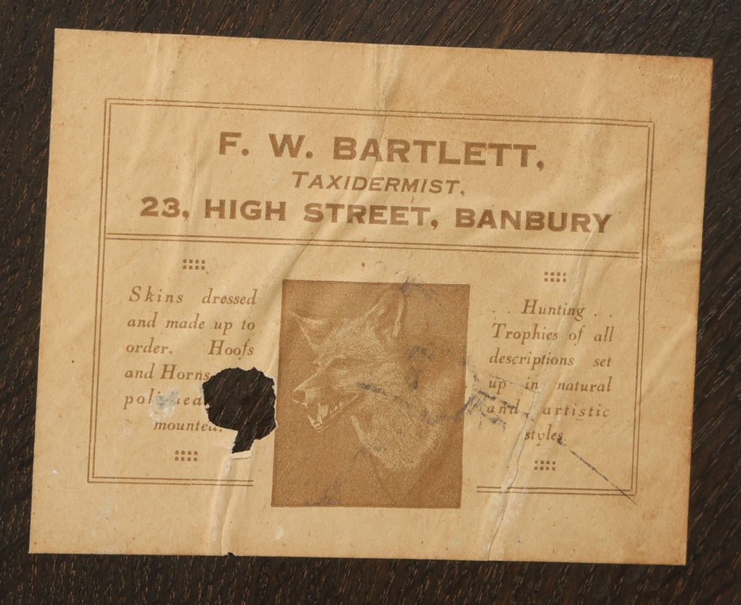 Pre-Auction Notes: Various wear and tear, but better condition than most mounts of this age. Some fur pulling loose if not handled gently. Small loss to paper label on verso.
