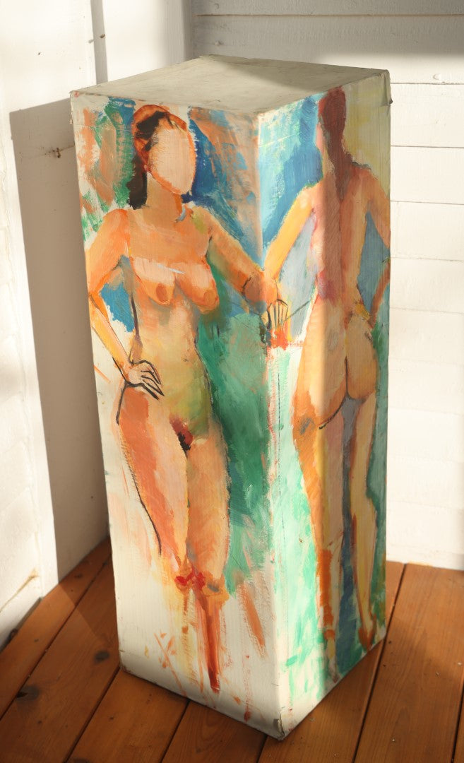 Vintage Three Dimensional Nude Painting, Nude Woman Shown From All Four Sides, Paint On Cardboard Rectangular Prism