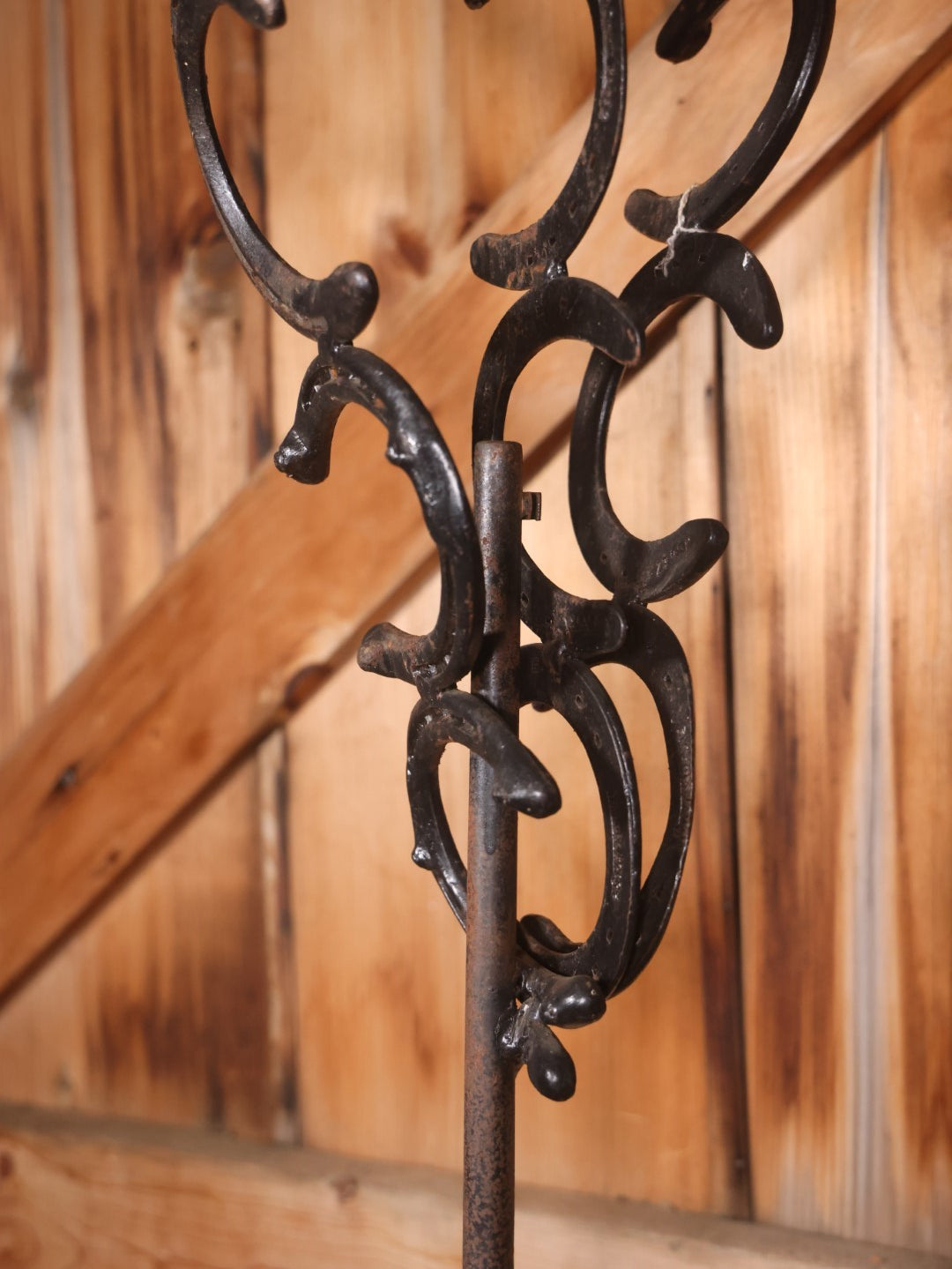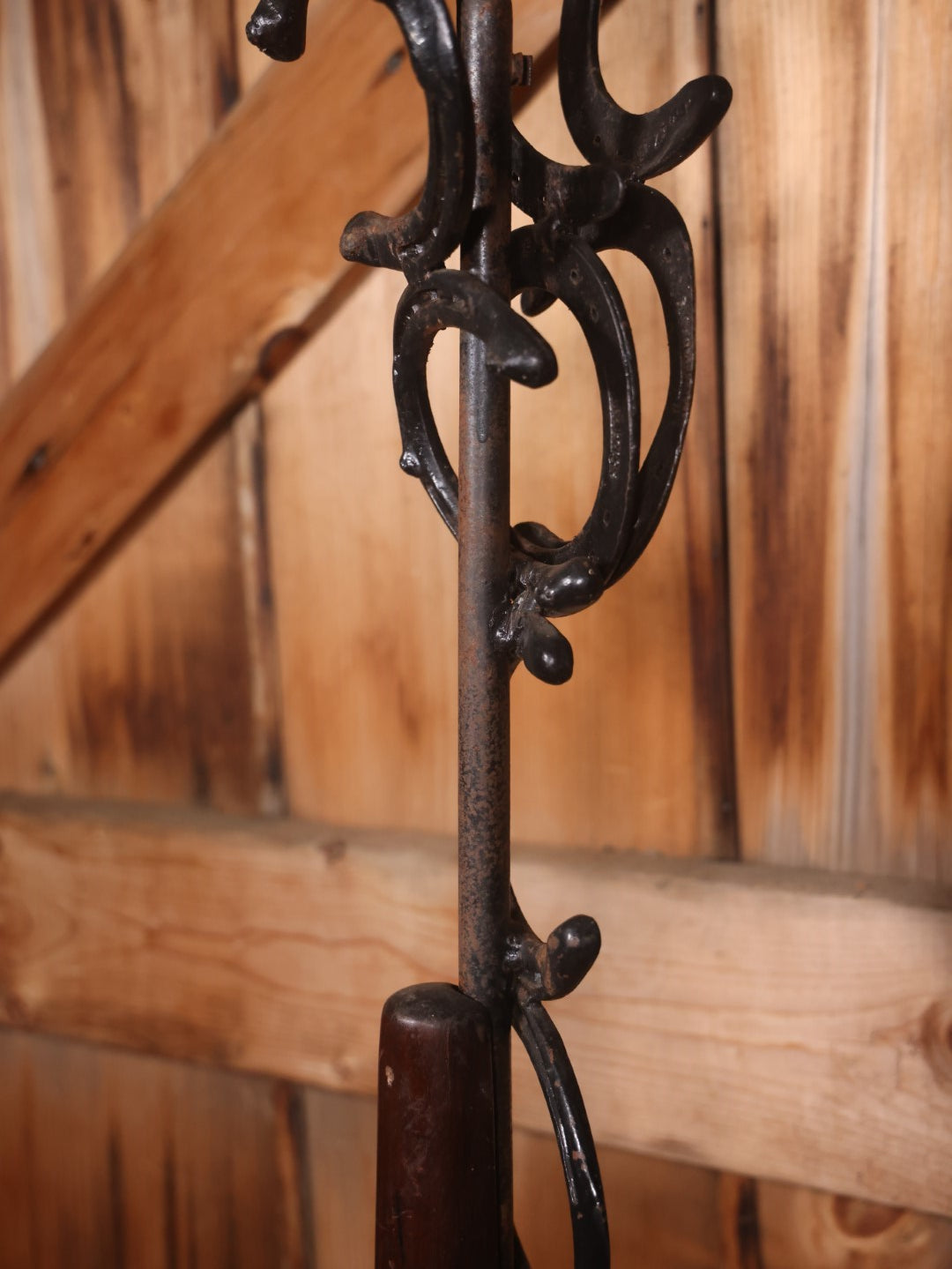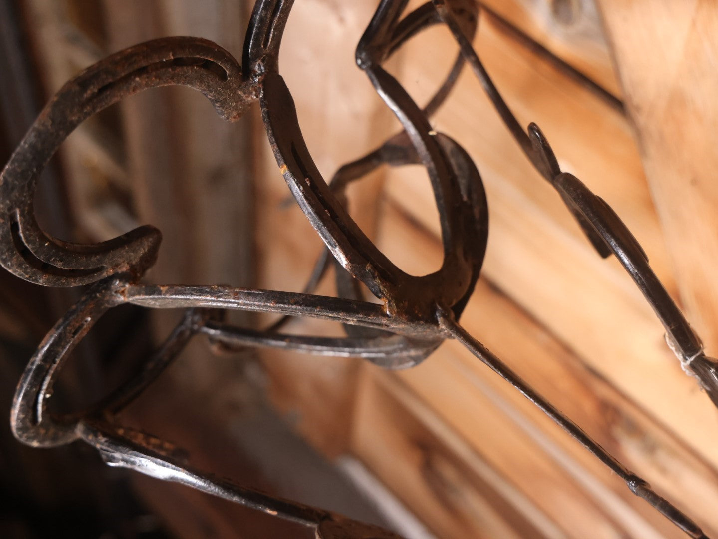 Vintage Western Folk Art Sculpture, Welded Horseshoes And Antique Rifle, Coat Stand Or Lamp, Likely Unfinished