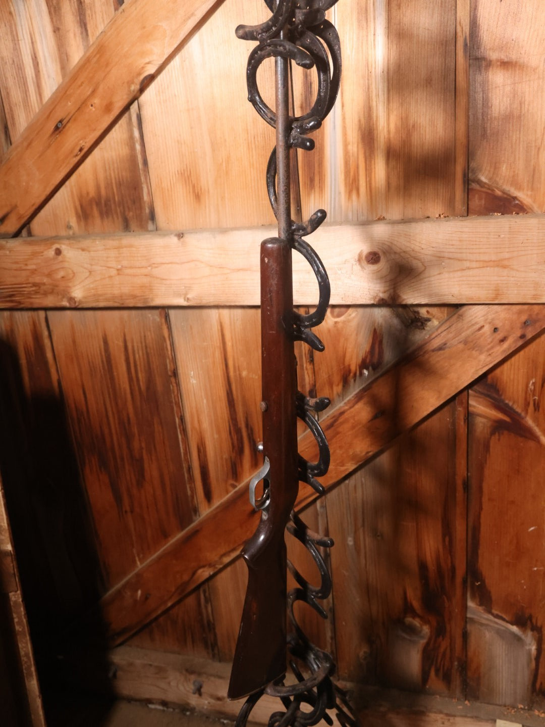 Various rust and wear, rifle appears to be real, but not certain, horse shoes by St. Croix Forge