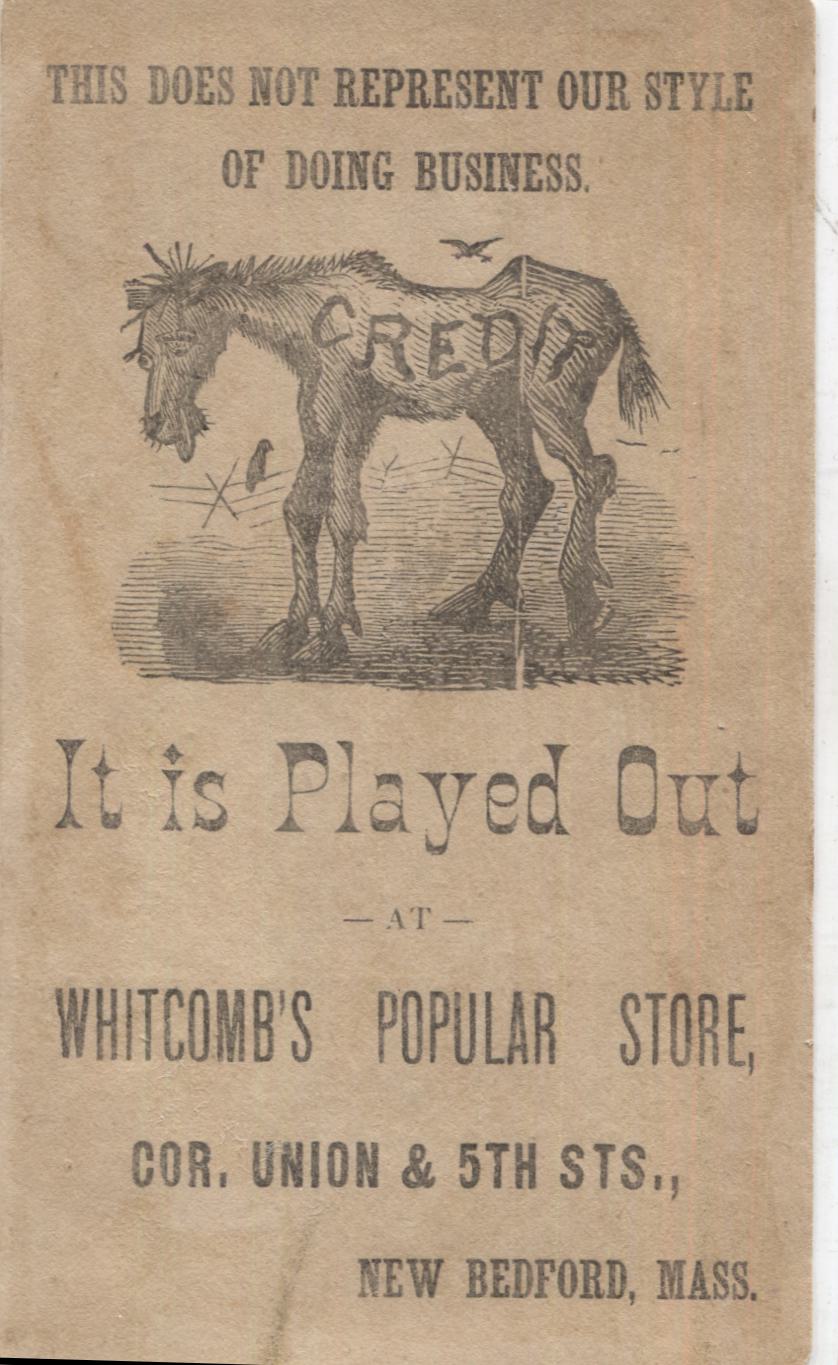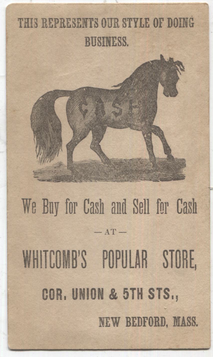 Whitcomb's Popular Store Antique Trade Card, New Bedford, MA - 2.75" x 4.5"