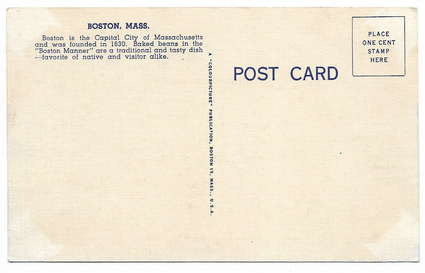 Boston, Mass. - Boston is the Capital City of Massachusetts and was founded in 630. Baked beans in the "Boston Manner" are a traditional and tasty dish - favorite of native and visitor alike.